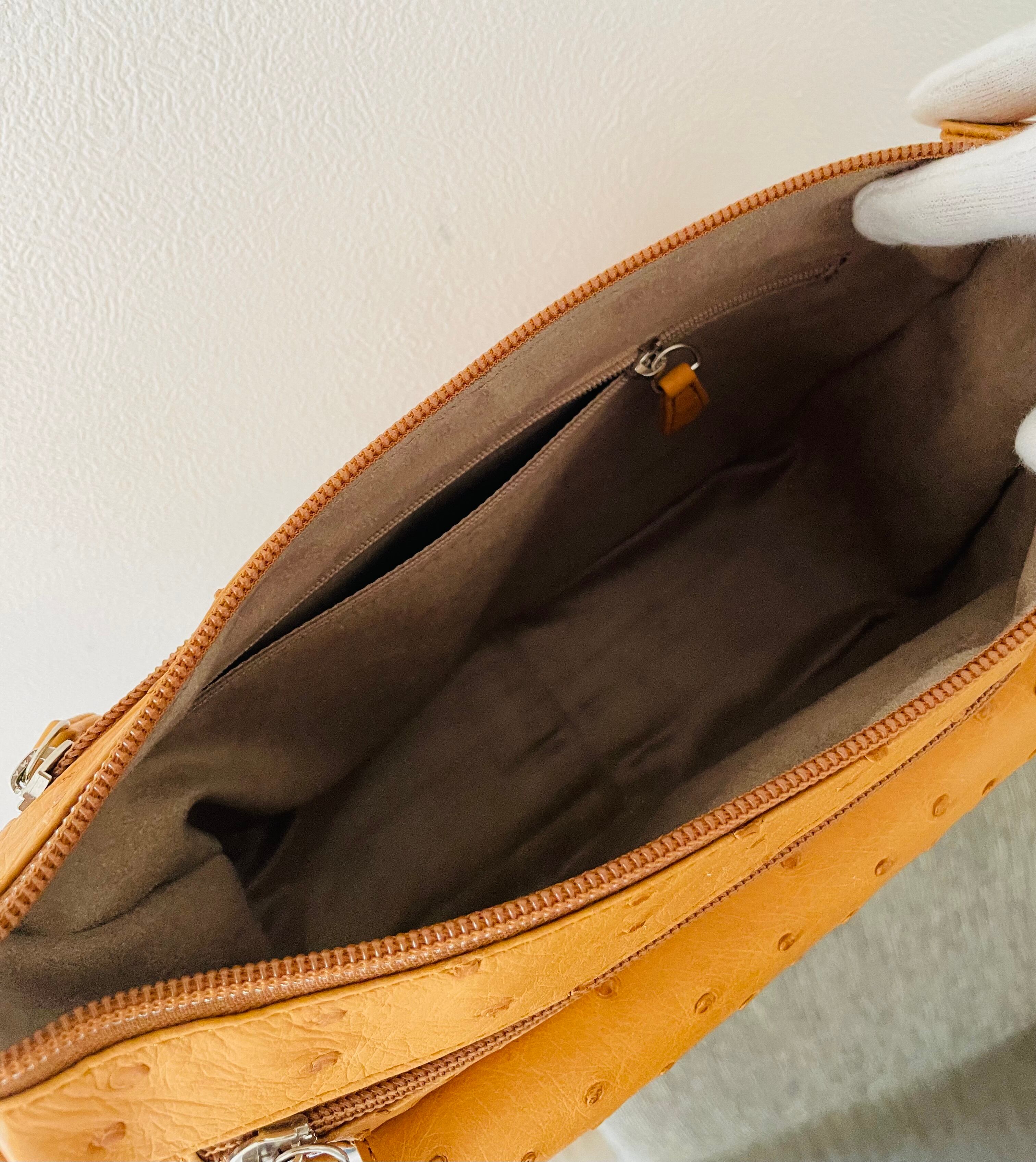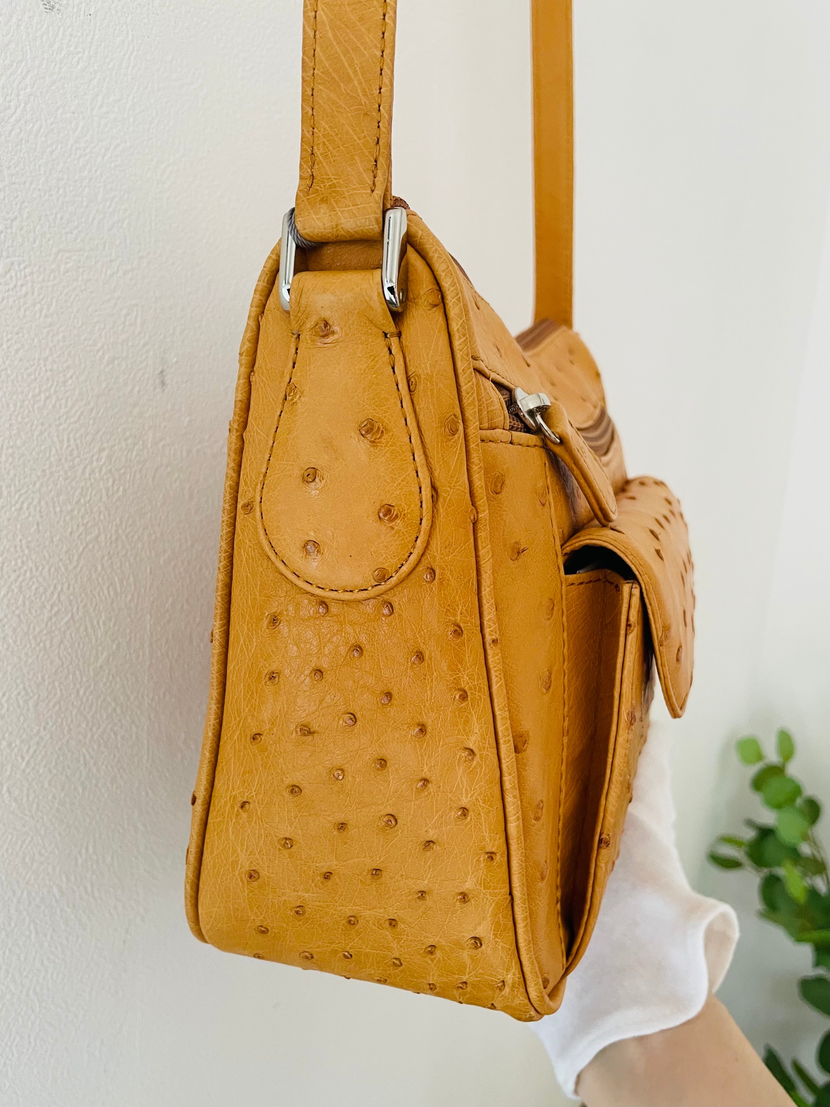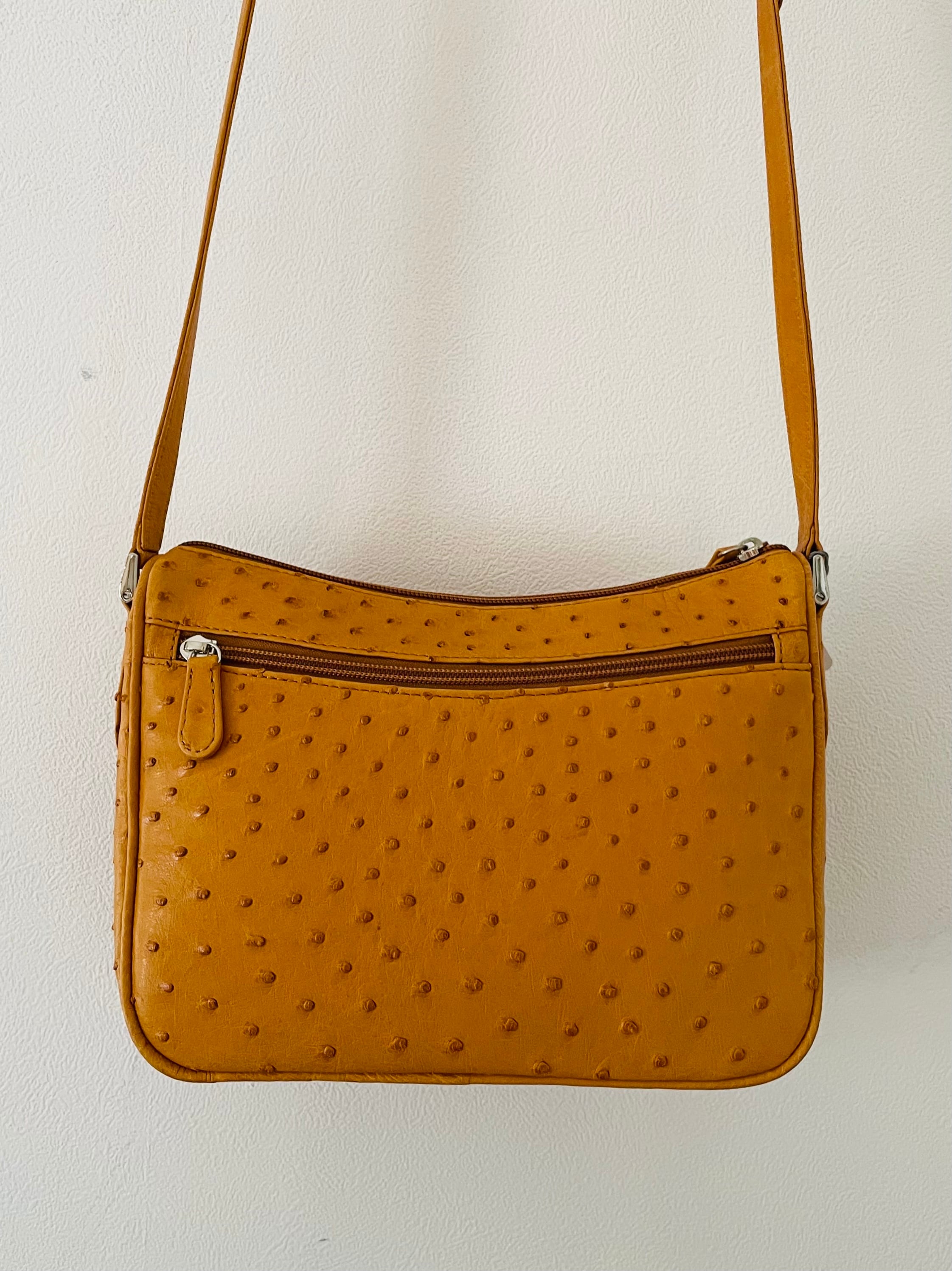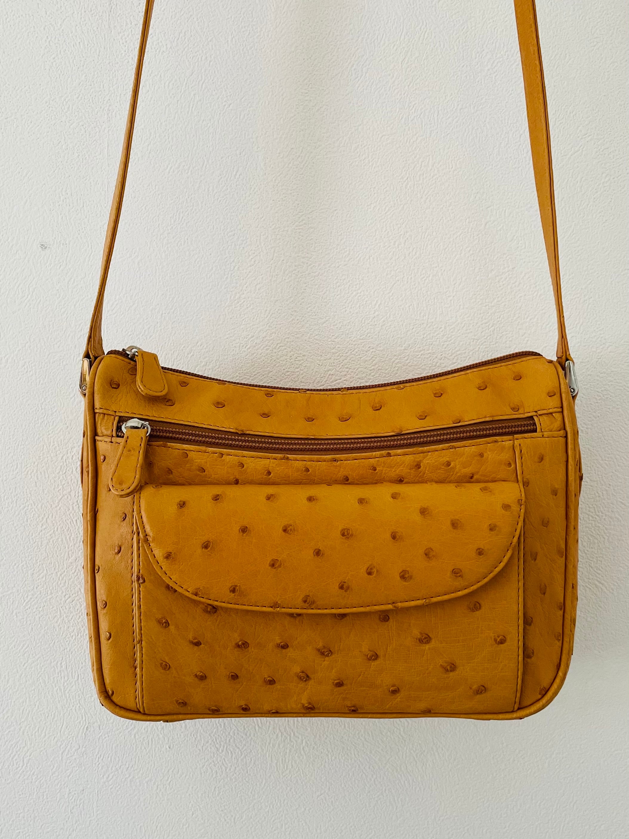 オーストリッチ バッグ 斜め掛けバッグ キャメル