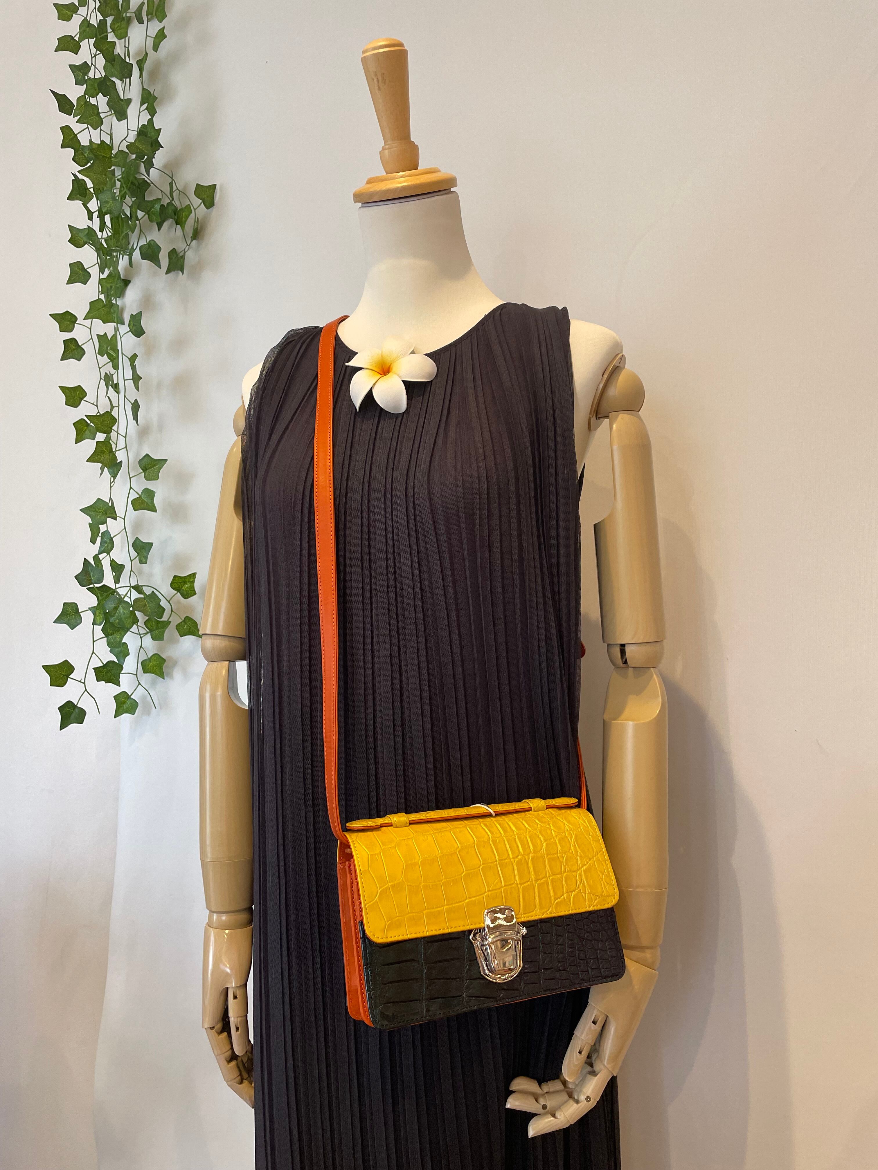このバッグは希少なクロコダイル革を使用し、日本の熟練した職人が丁寧に仕立てています。
