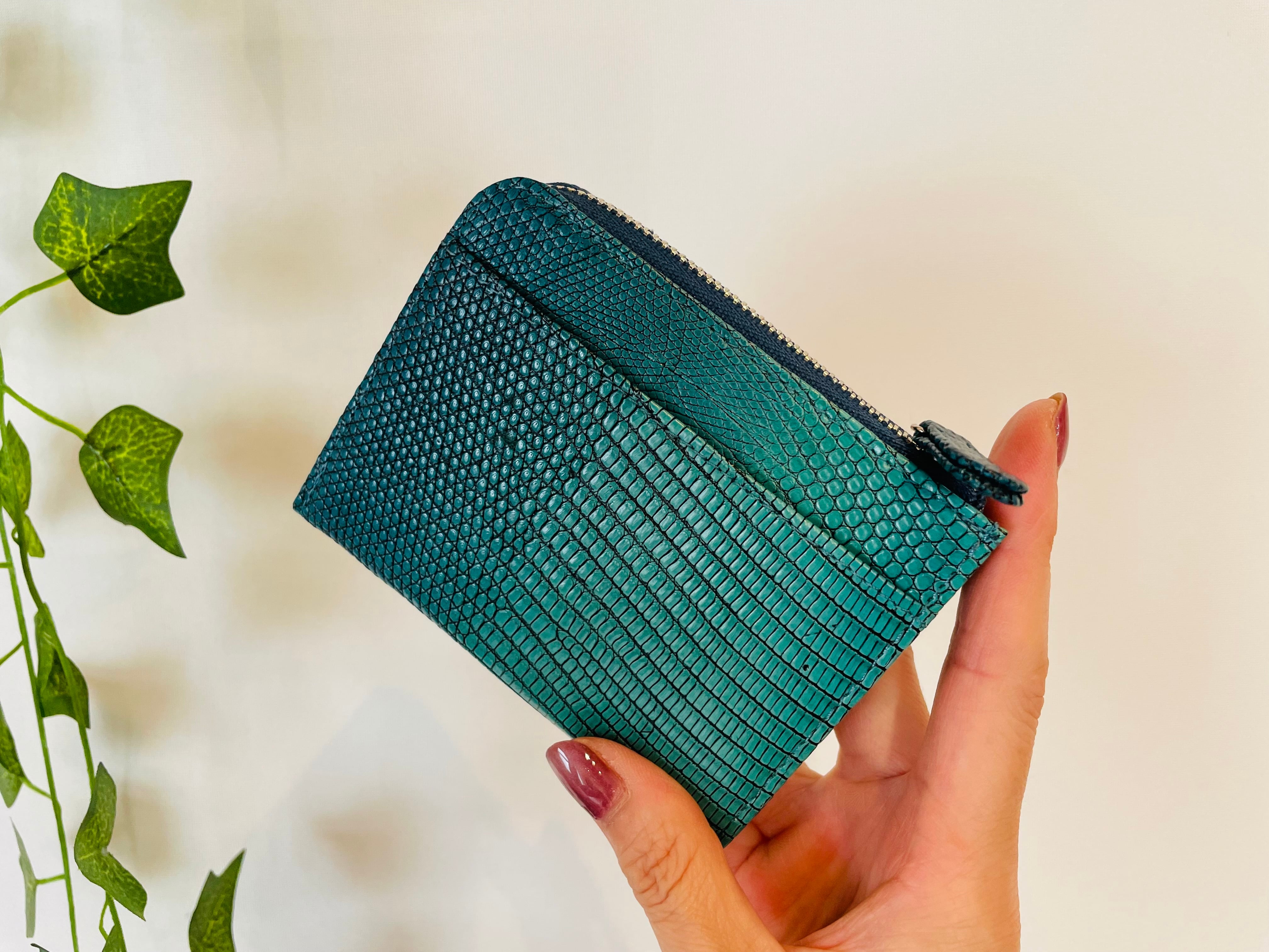 このリザード革は、ウロコ状に並んだ革の模様の美しさが特徴です。