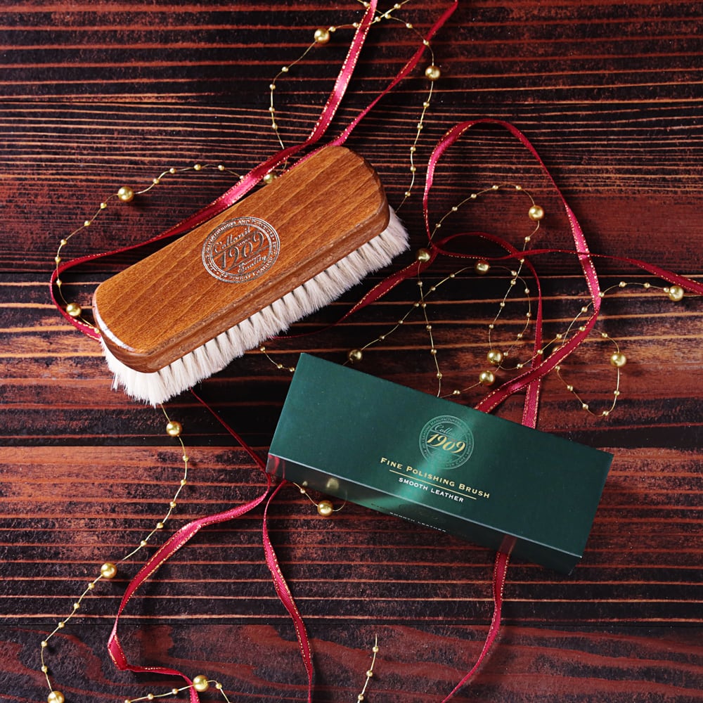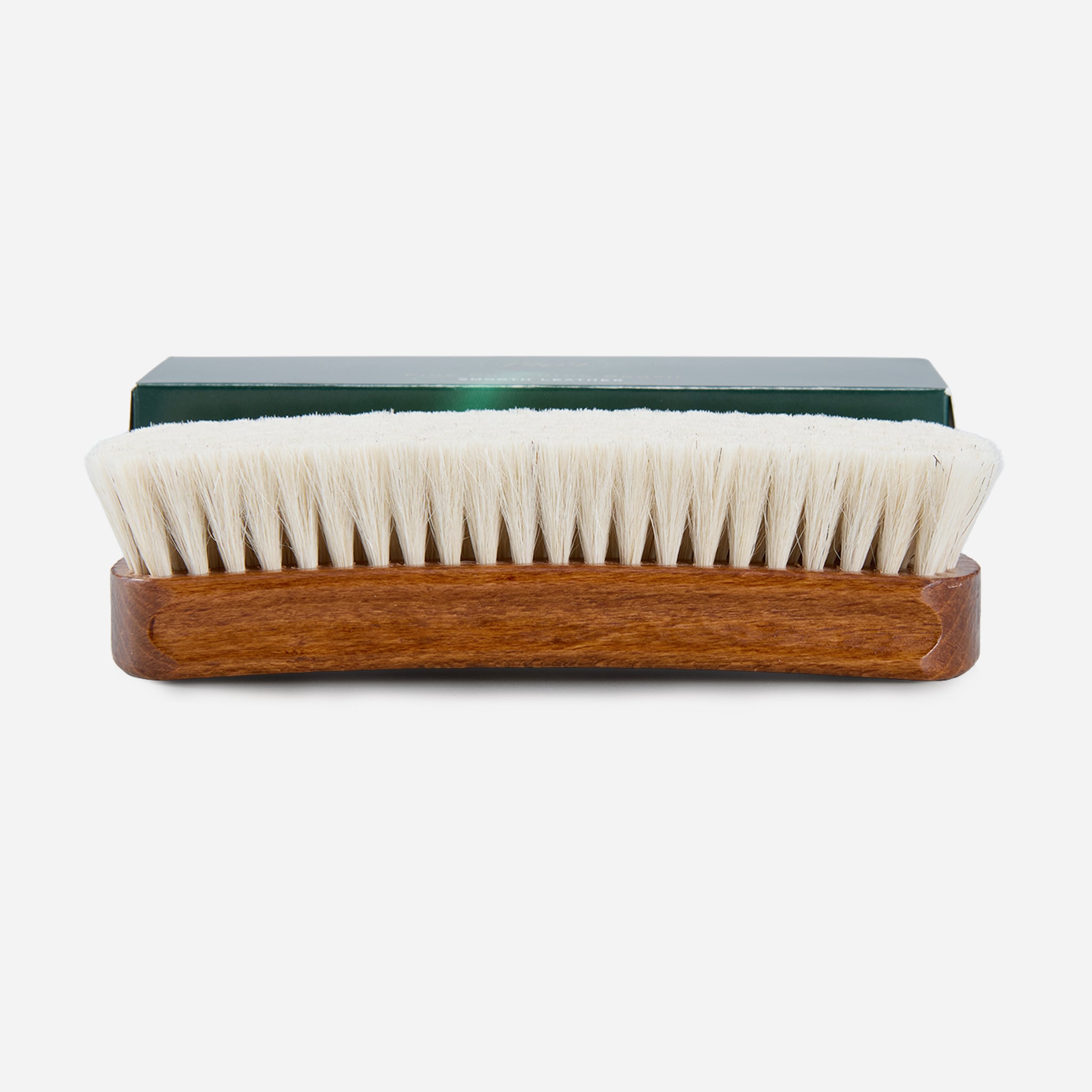 繰り返し仕上げ磨きに使用してクリームを毛に含んだ山羊毛ブラシは、時間の無い時にはブラシのみでも美しいツヤを出すことのできる便利なお手入れ道具となります。