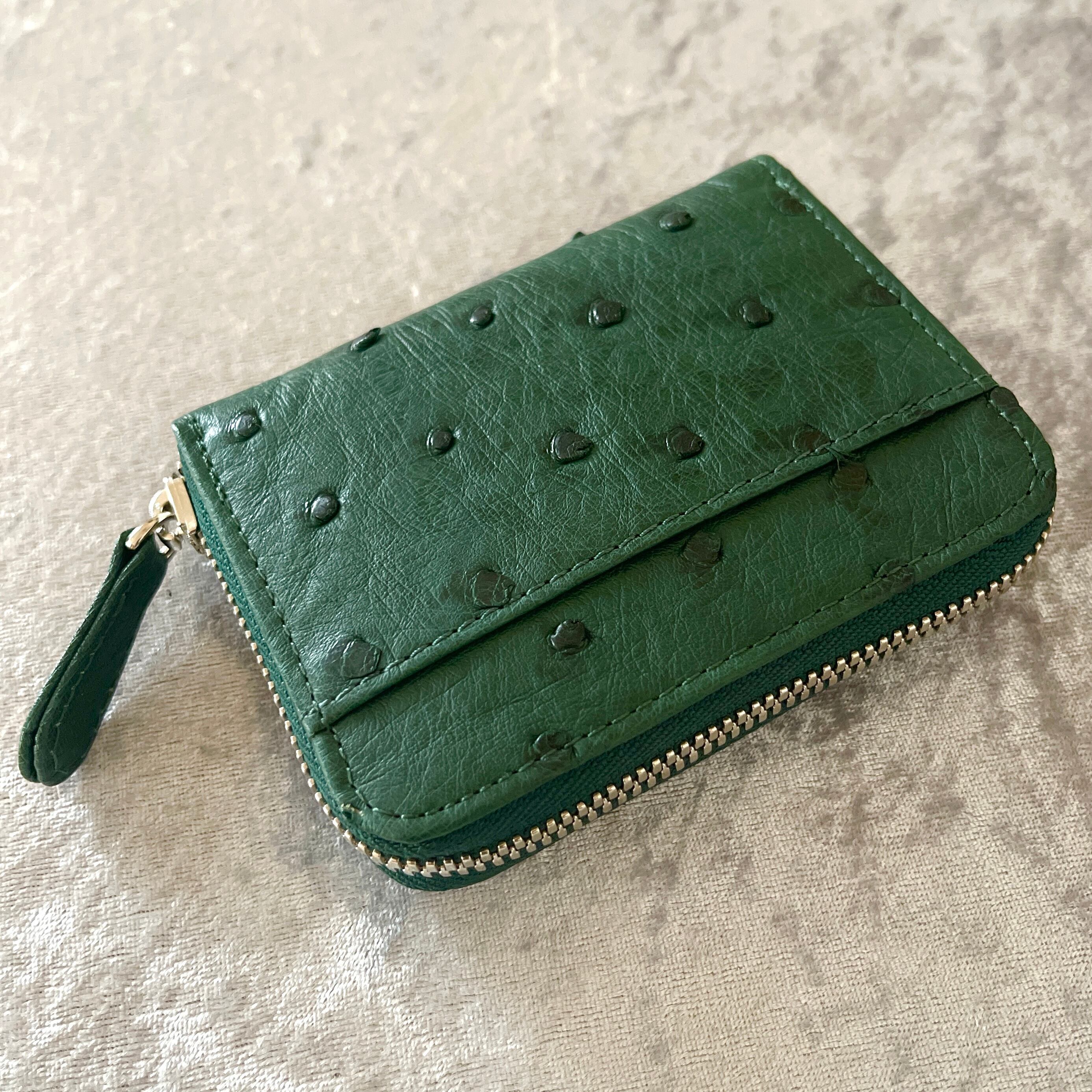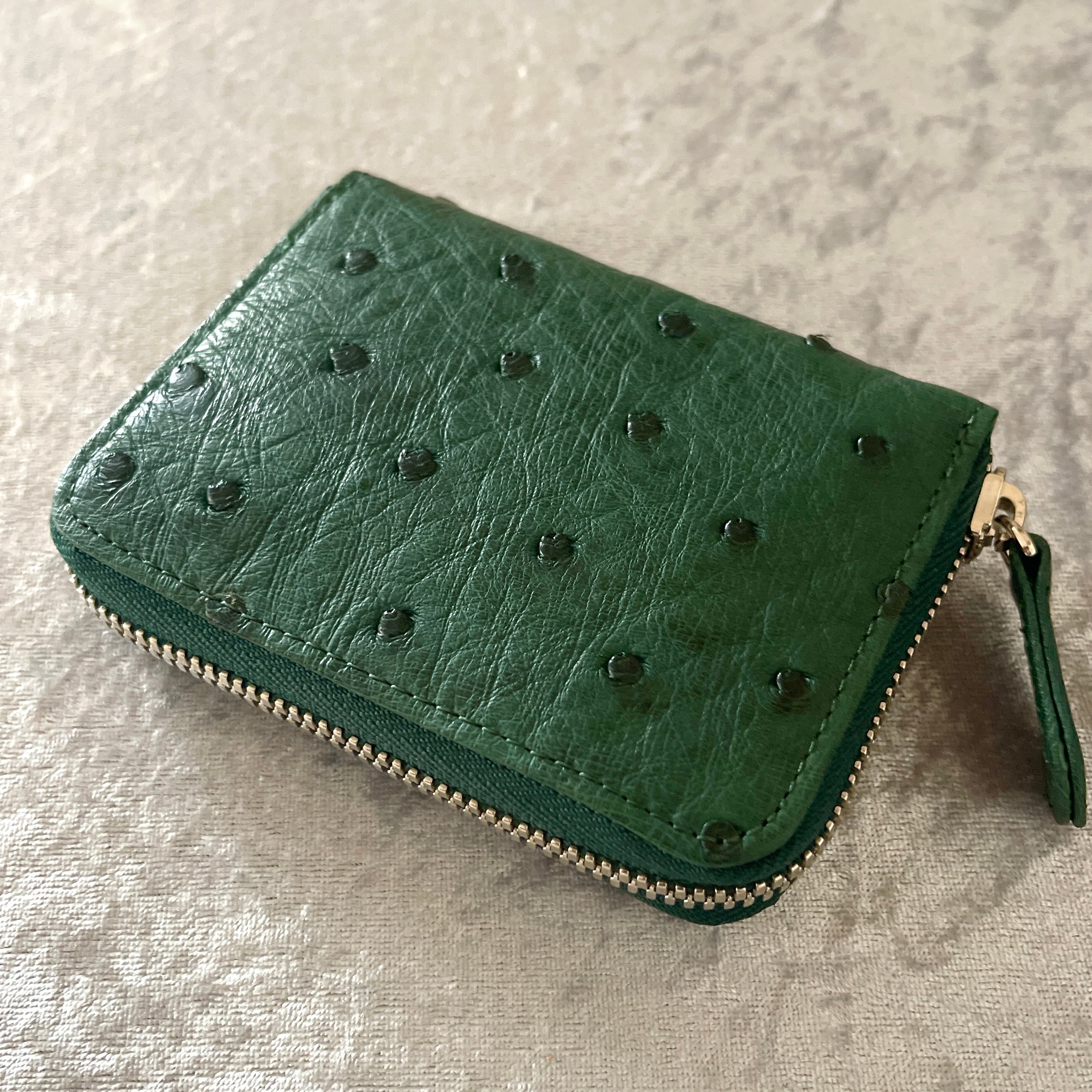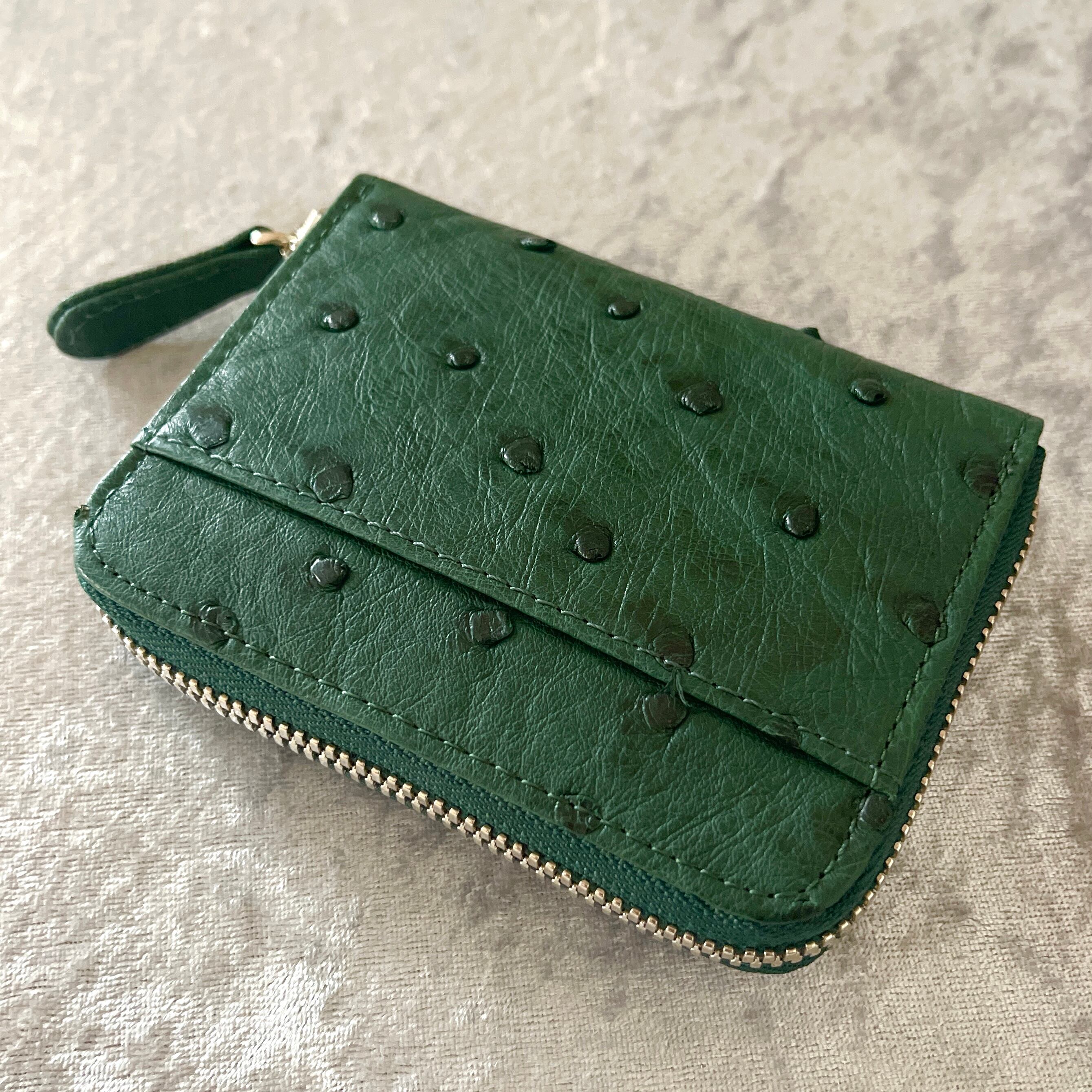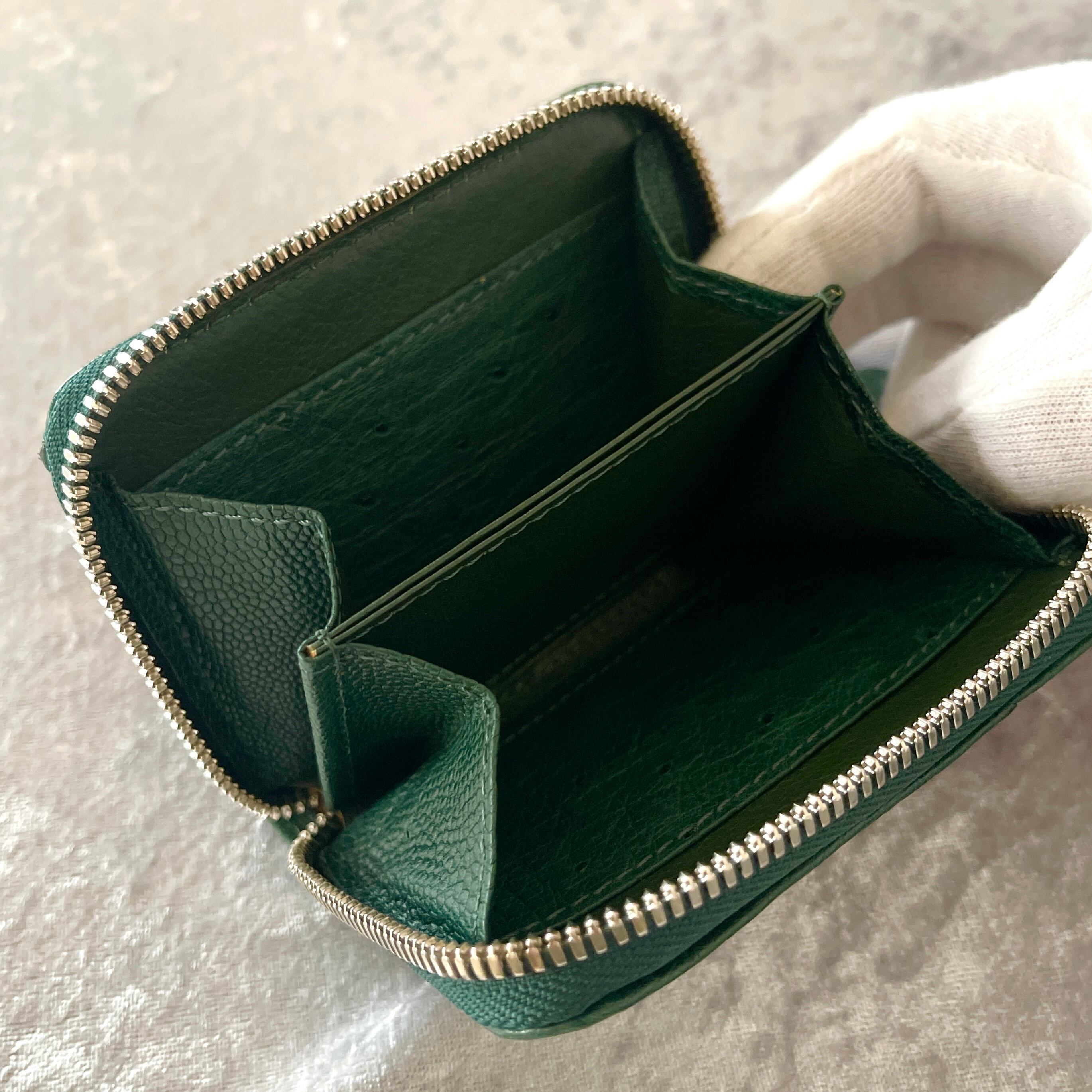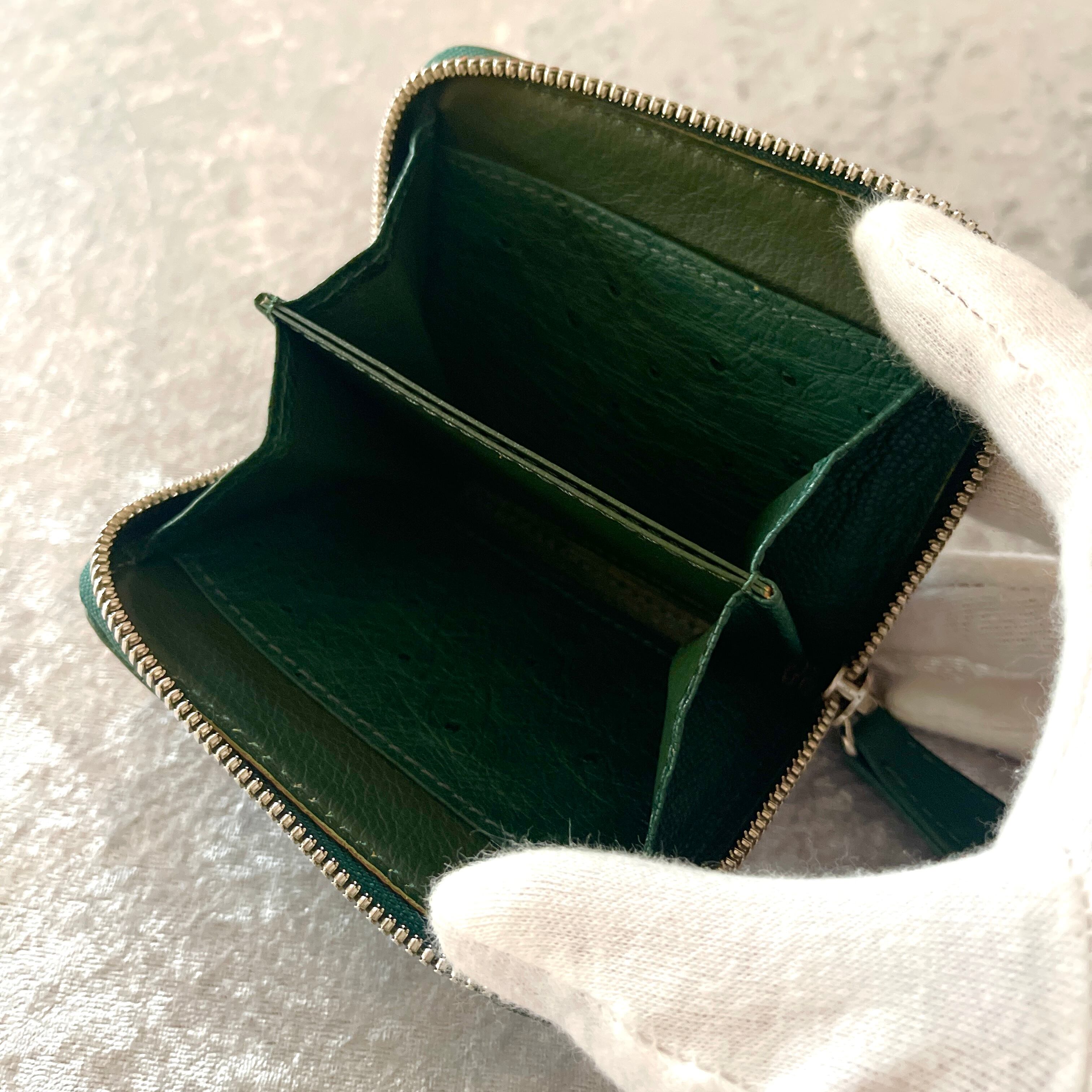 上品なオーストリッチ素材を使用した特別なラウンドコインケースです。落ち着いたキプロスグリーンが上品さを演出し、日常使いや特別なシーンで活躍すること間違いなしです。デザインはシンプルながらも、存在感がありますので、スタイルを問わずお使いいただけます。