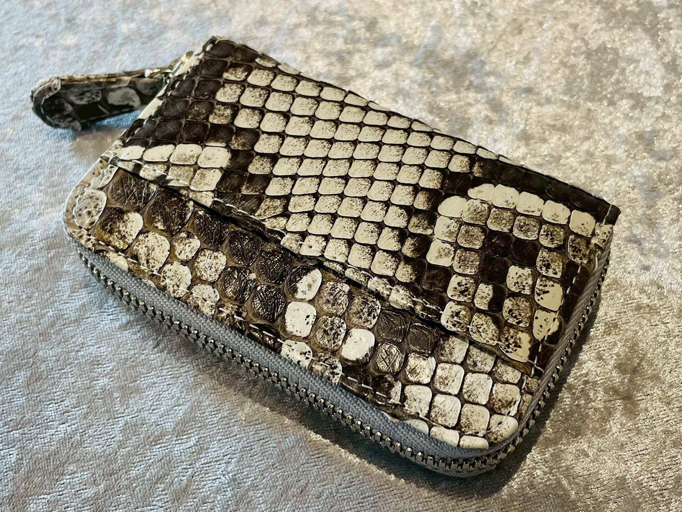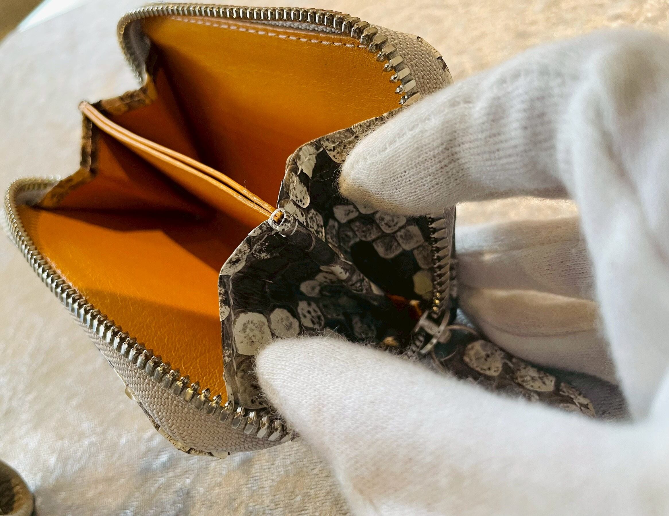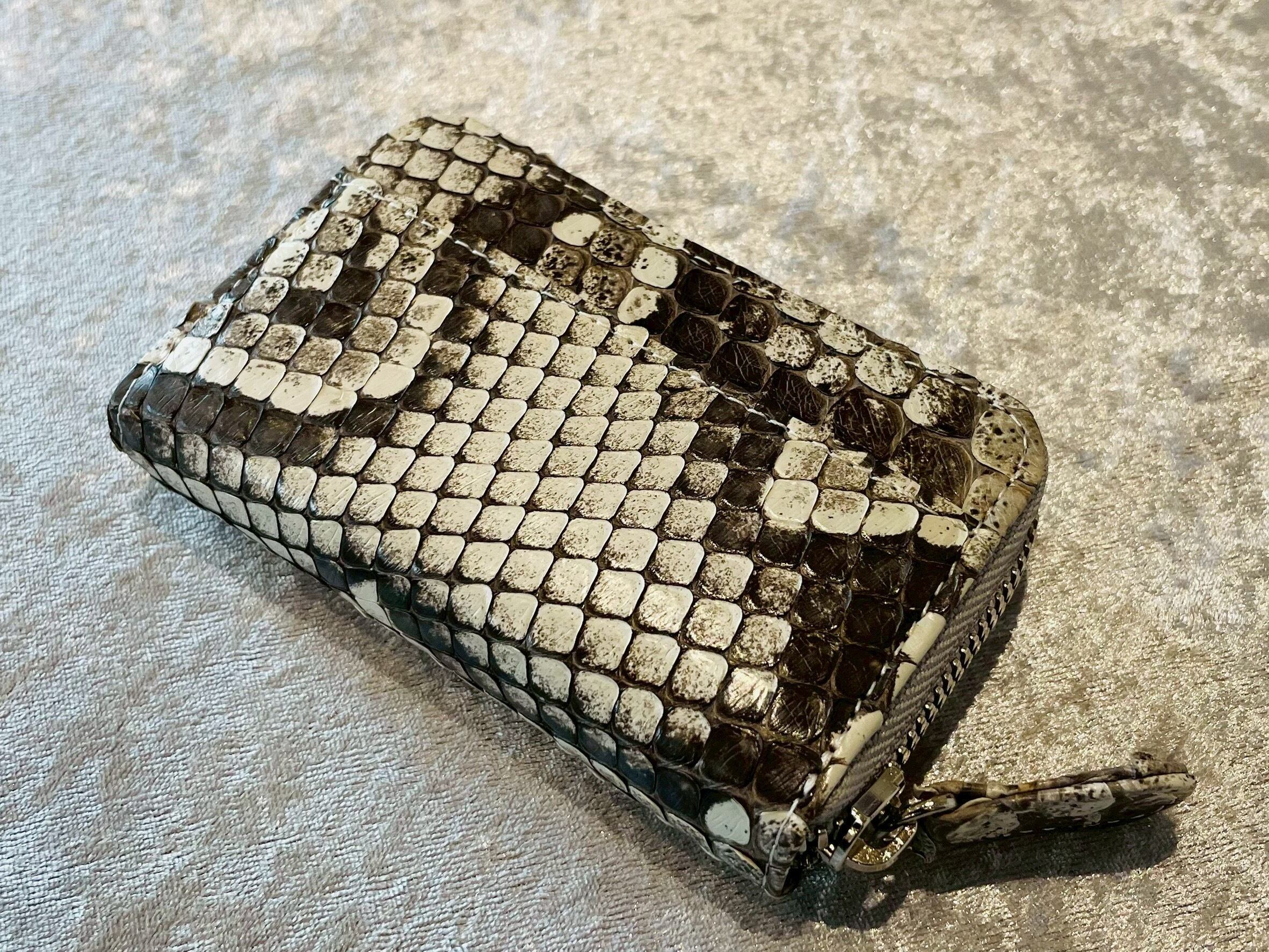 自然な風合いを持つダイヤモンドパイソン素材を使用した特別なラウンドコインケースです。ナチュラルなカラーが手元をさりげなく引き立て、日常使いや特別なシーンで活躍すること間違いなしです。シンプルなデザインでありながらも、その存在感はスタイルを問わずお使いいただけます。