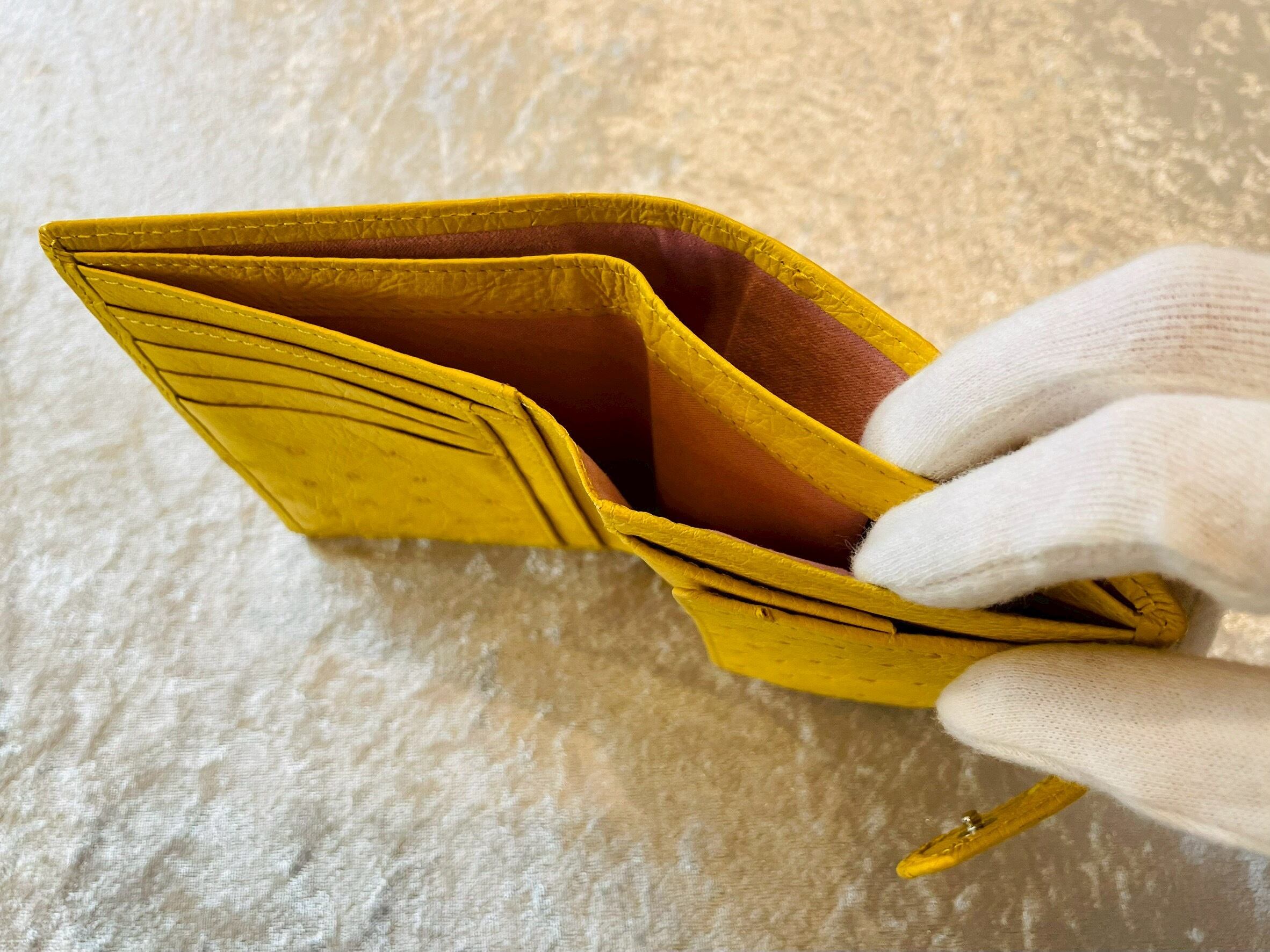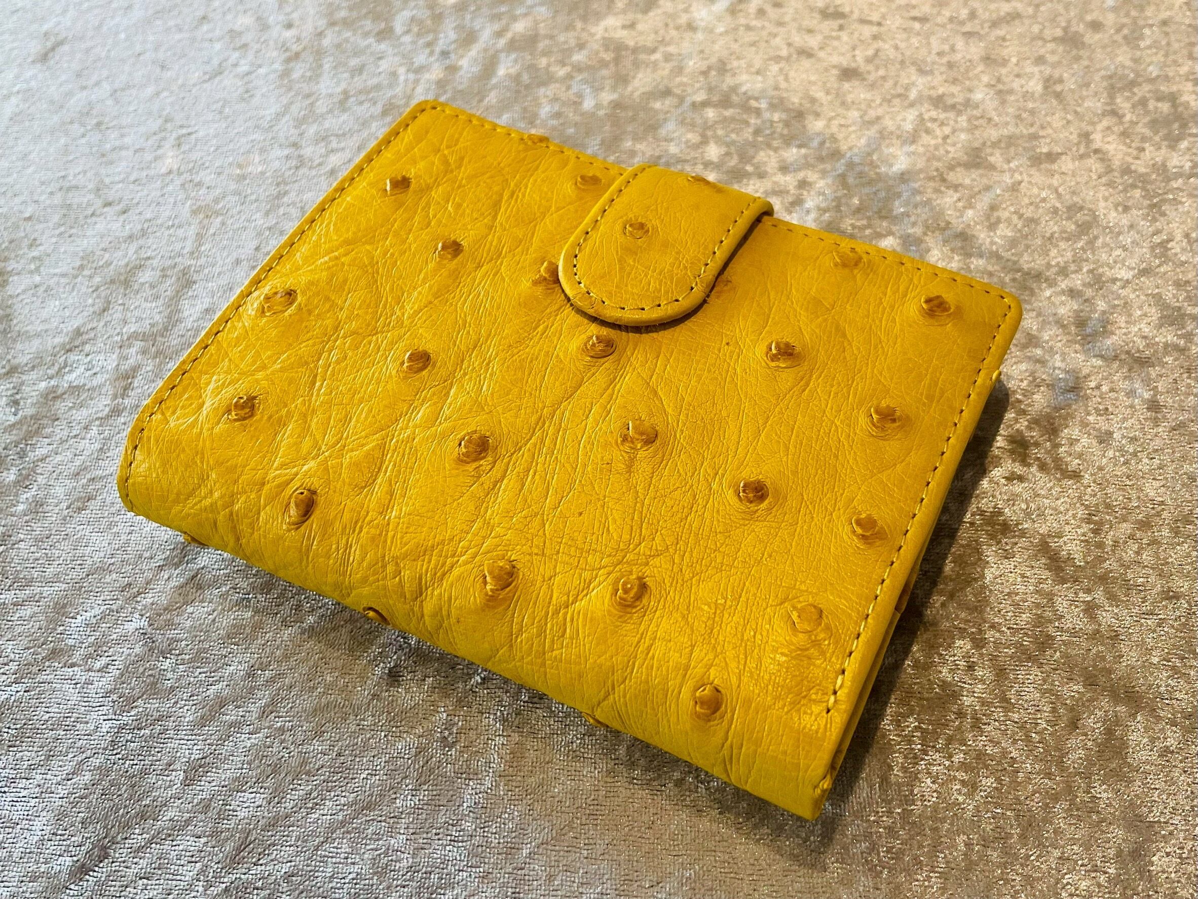 華やかさと高級感を兼ね備えたオーストリッチ二つ折ウォレット イエロー!