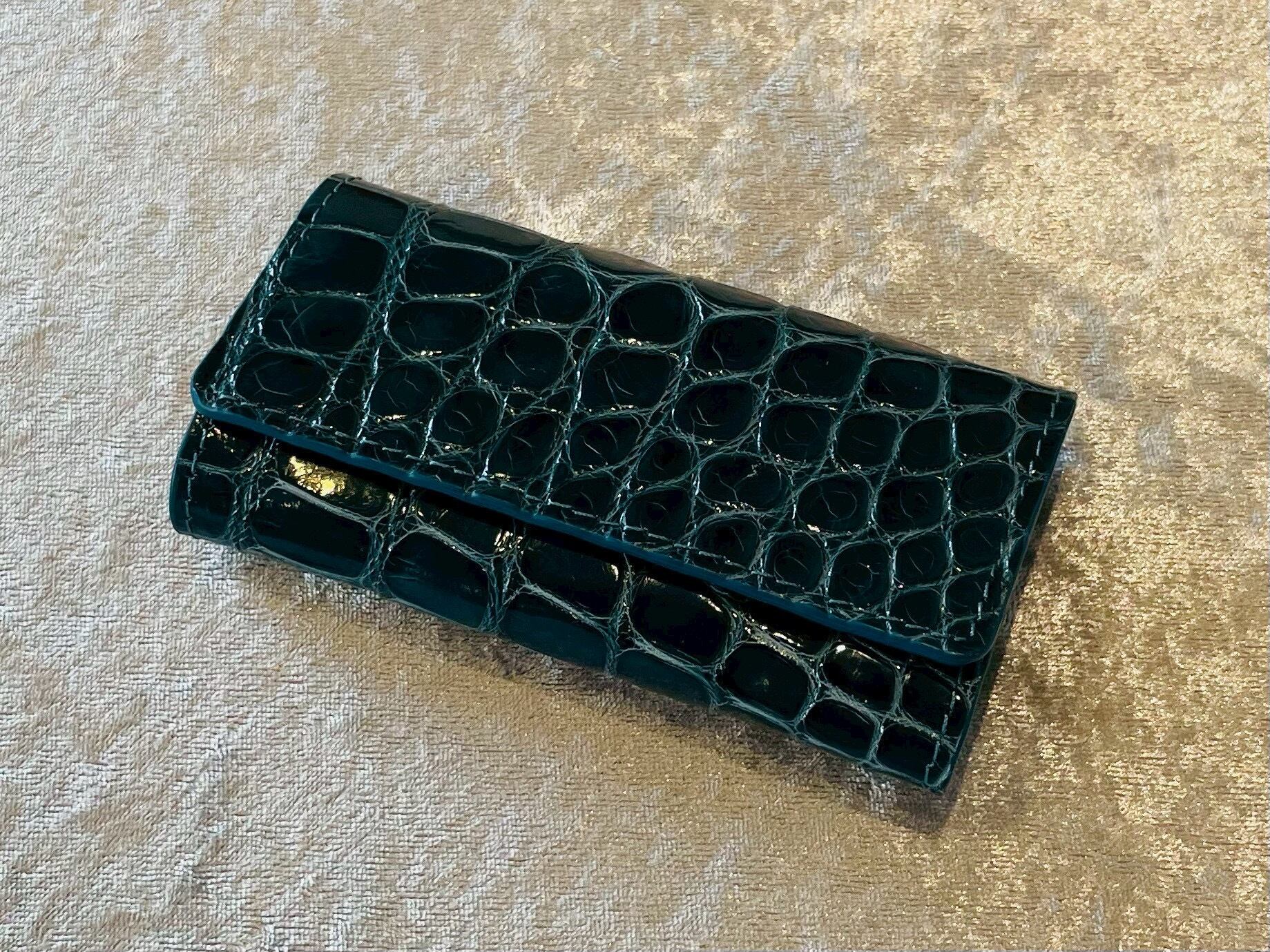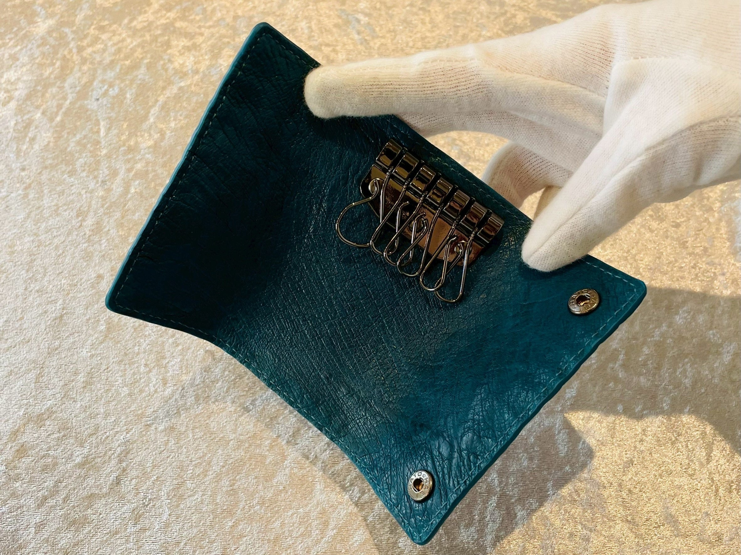 美しいクロコダイル素材を使用した特別なキーケースです。エレガントなロイヤルブルーが手元を華やかに演出し、日常使いや特別なシーンでの活躍が期待されます。シンプルでありながらスタイリッシュなデザインは、どのスタイルにも自然に調和します。