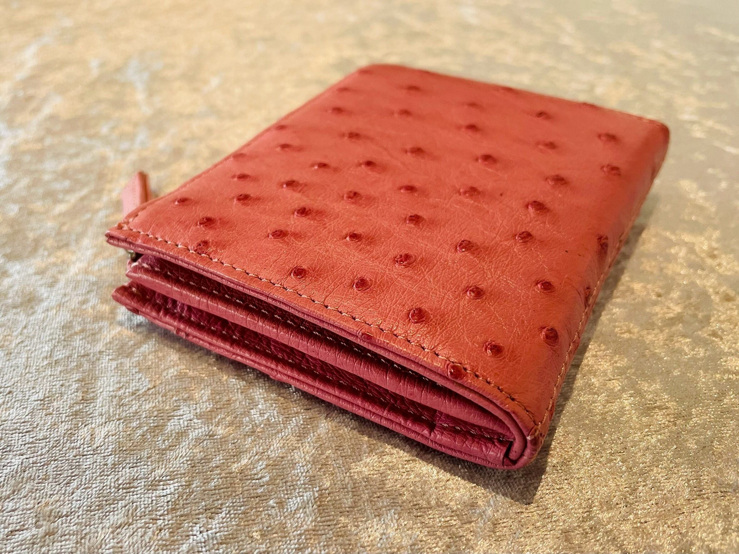 美しいオーストリッチ素材を使用した特別なL字ファスナーウォレットです。エレガントなピンクカラーが手元を華やかに演出し、日常使いや特別なシーンでの活躍が期待されます。シンプルでありながらスタイリッシュなデザインは、幅広いスタイルに自然に調和します。