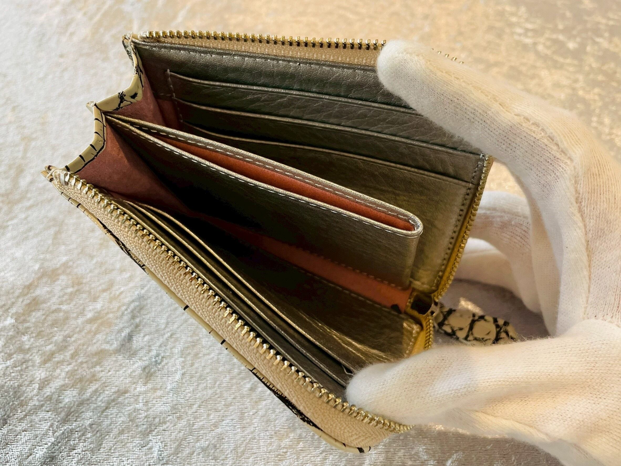 華やかさと高級感を兼ね備えたクロコダイル L字ファスナーウォレット 小 バニラ!
