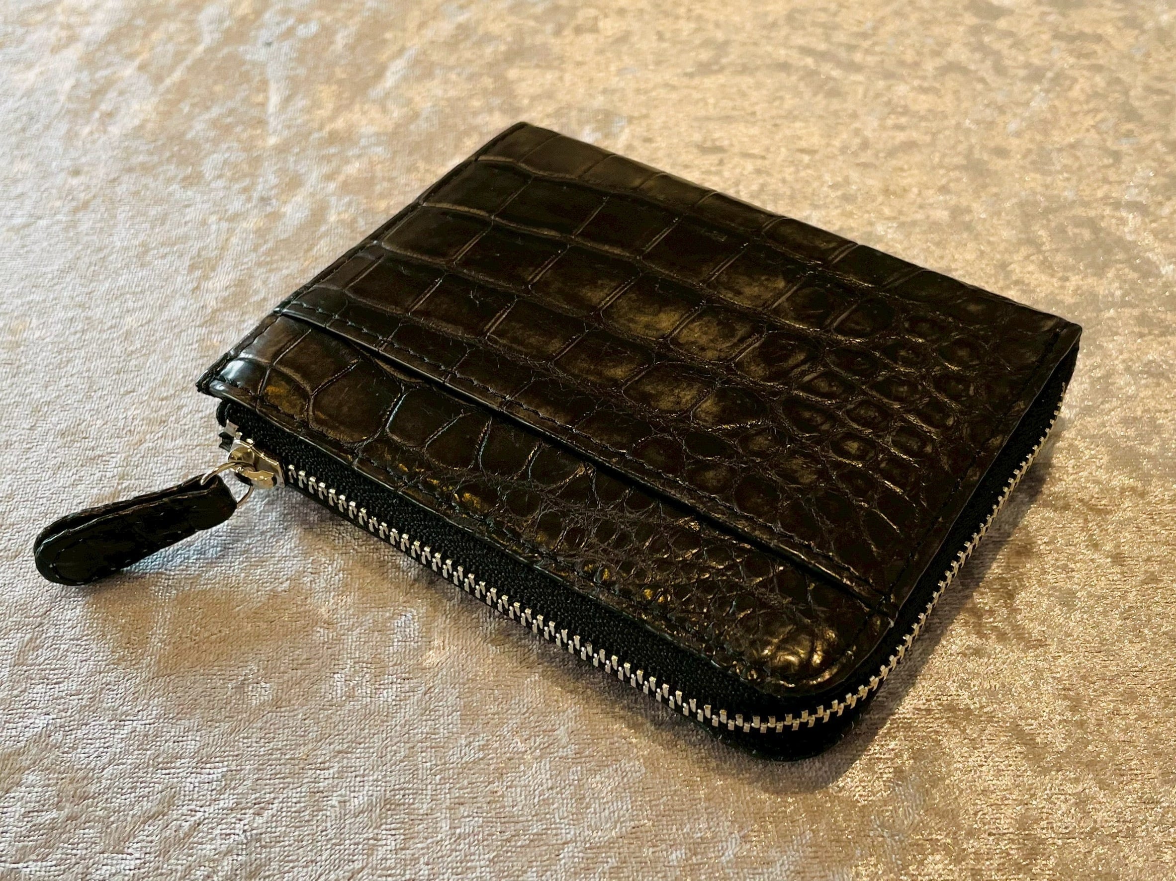 華やかさと高級感を兼ね備えたクロコダイル L字ファスナーウォレット 小 墨染!