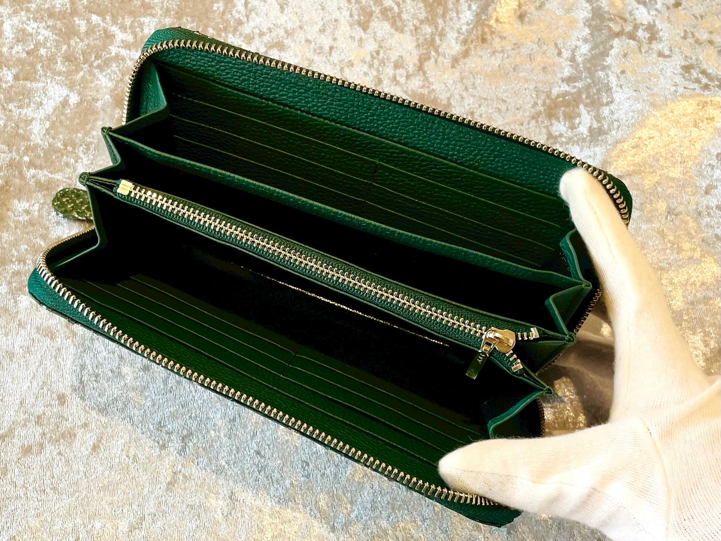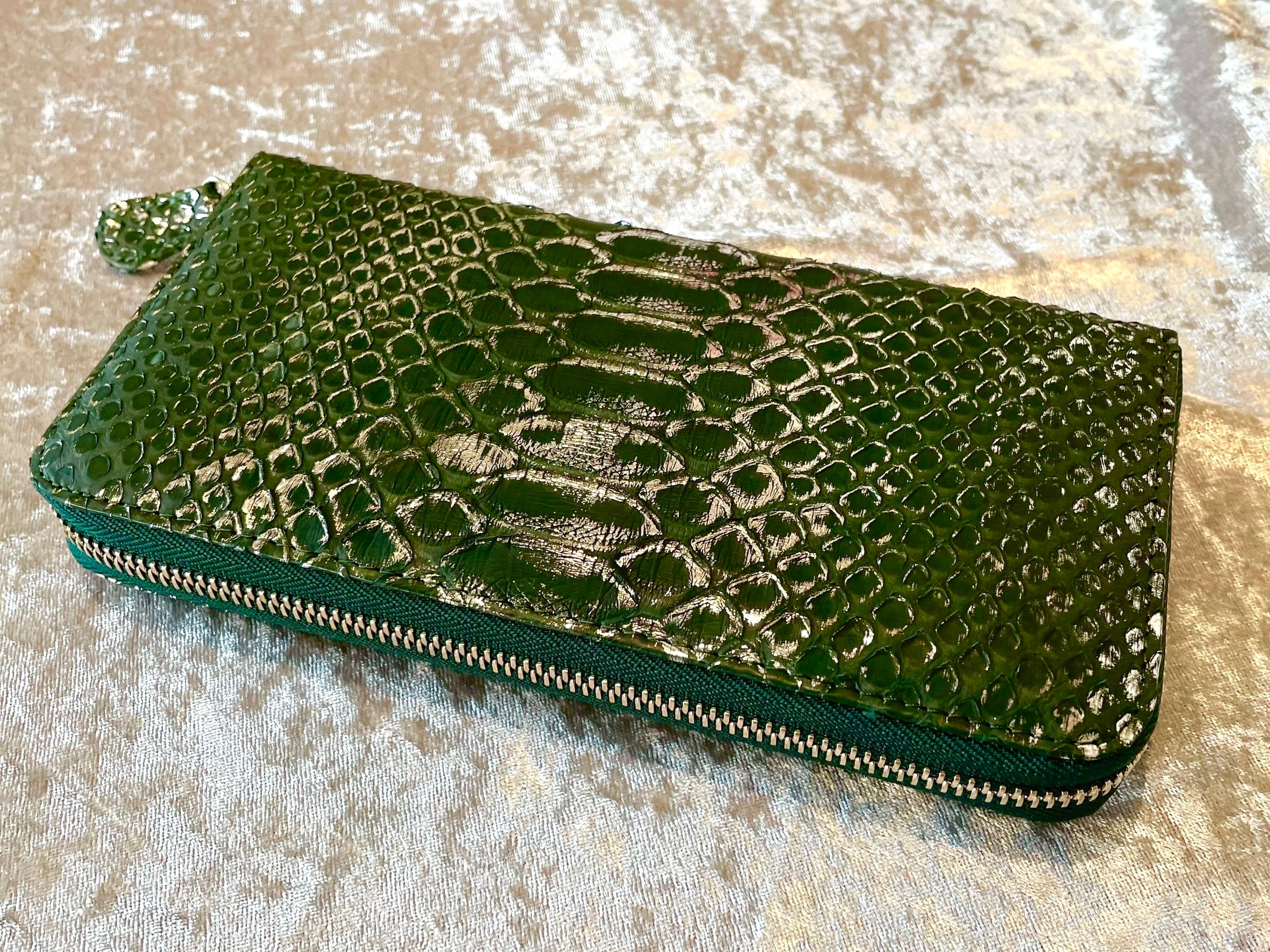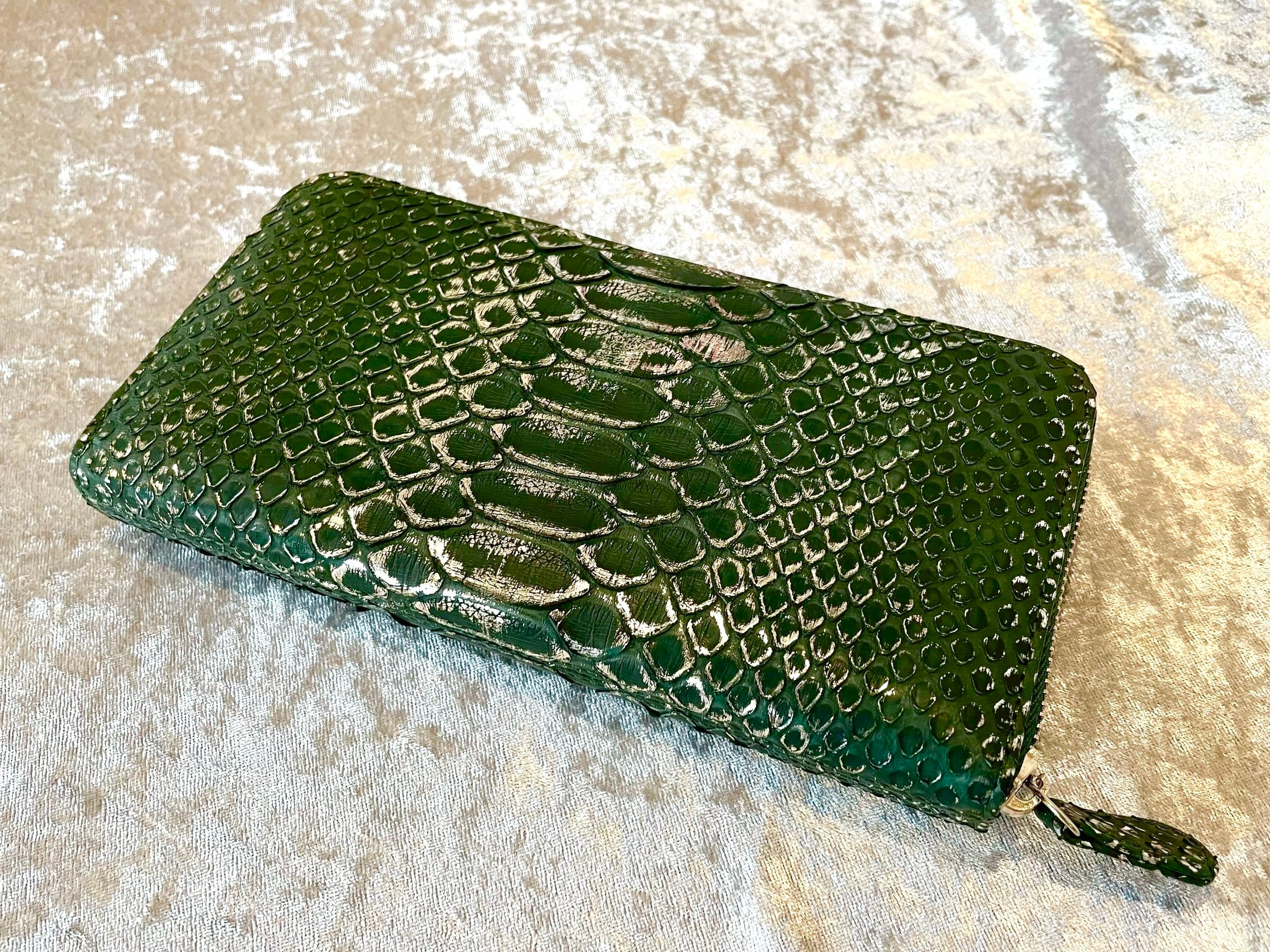 厳選されたダイヤモンドパイソンを使用したラウンドファスナーウォレットです。