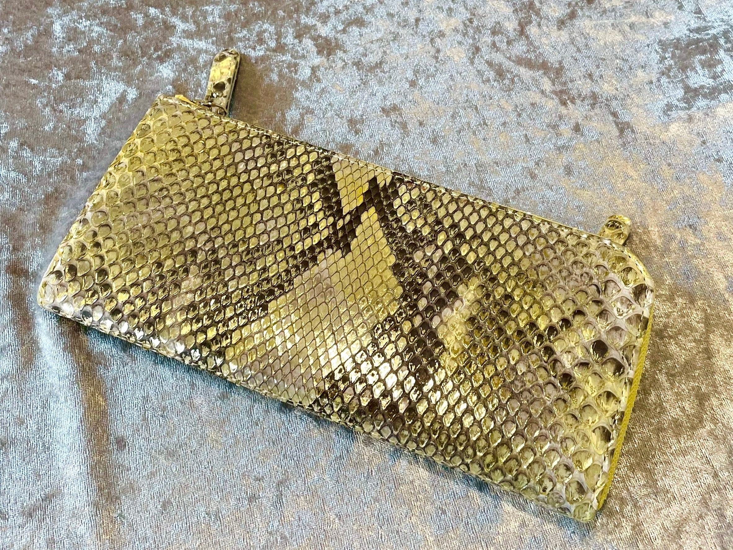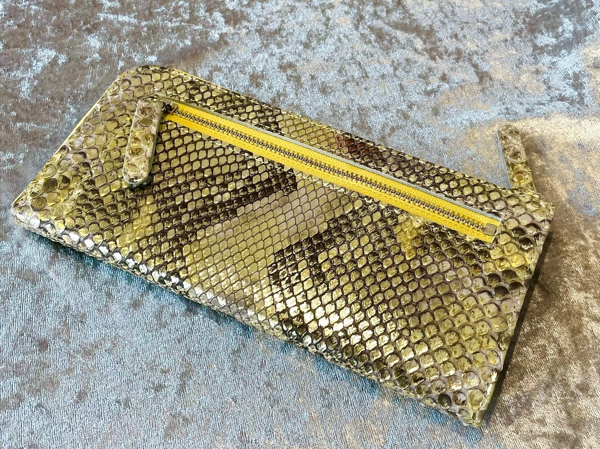 厳選されたダイヤモンドパイソンの革を使い、国内で仕立てたL字ファスナータイプのウォレットです。
