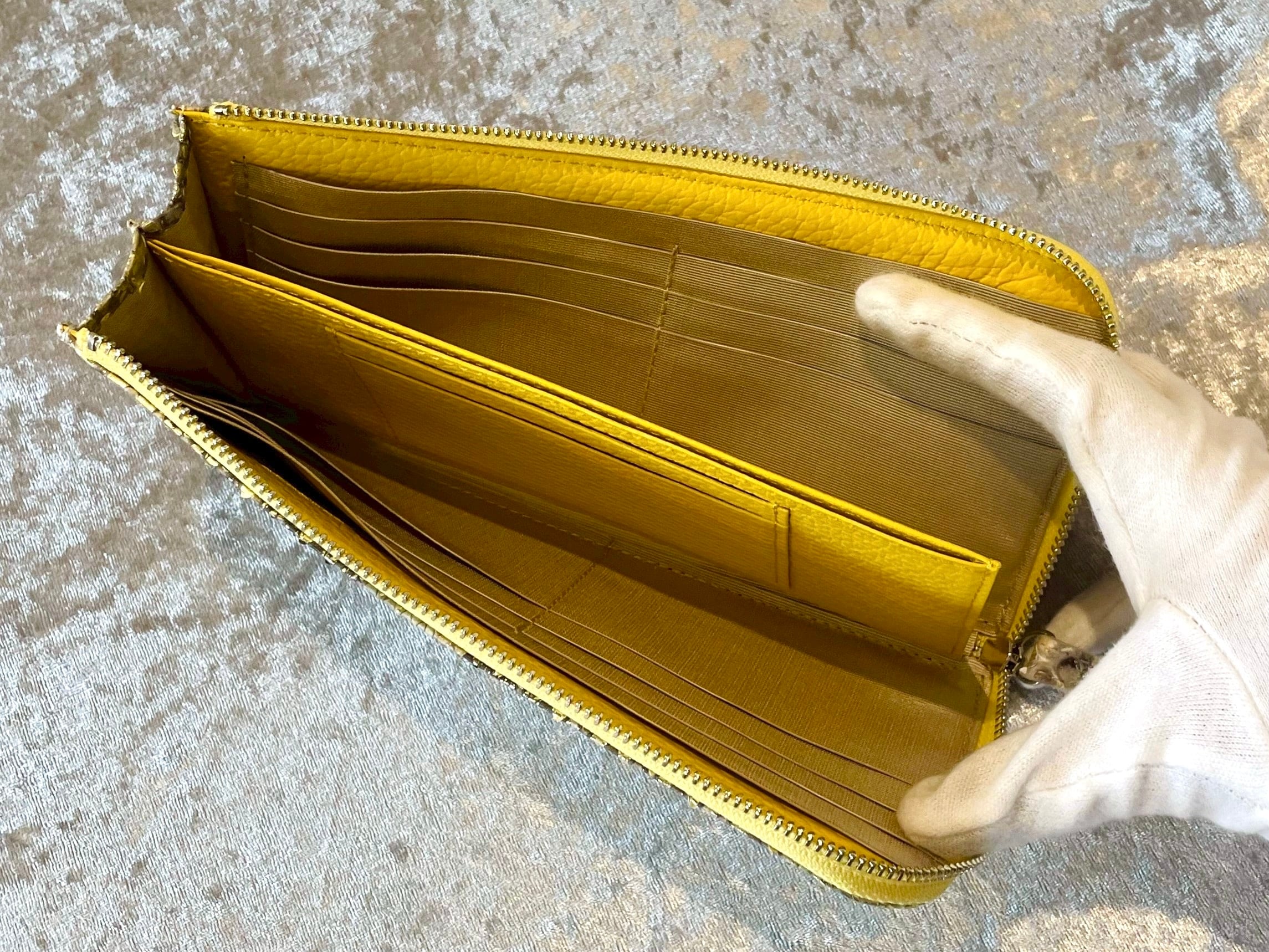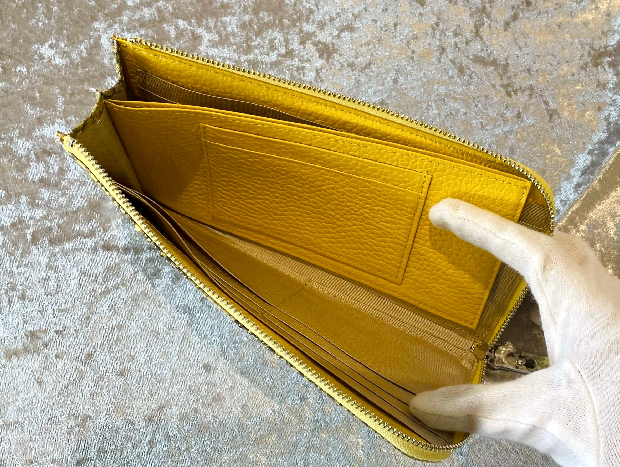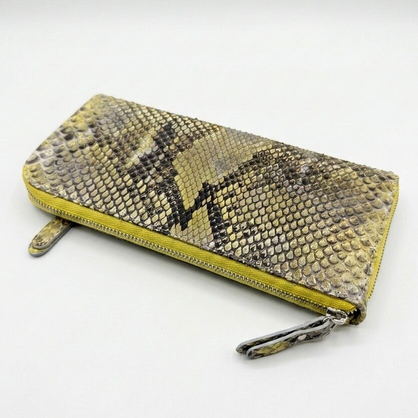 ダイヤモンドパイソン L字ファスナーウォレット イエローナチュラル