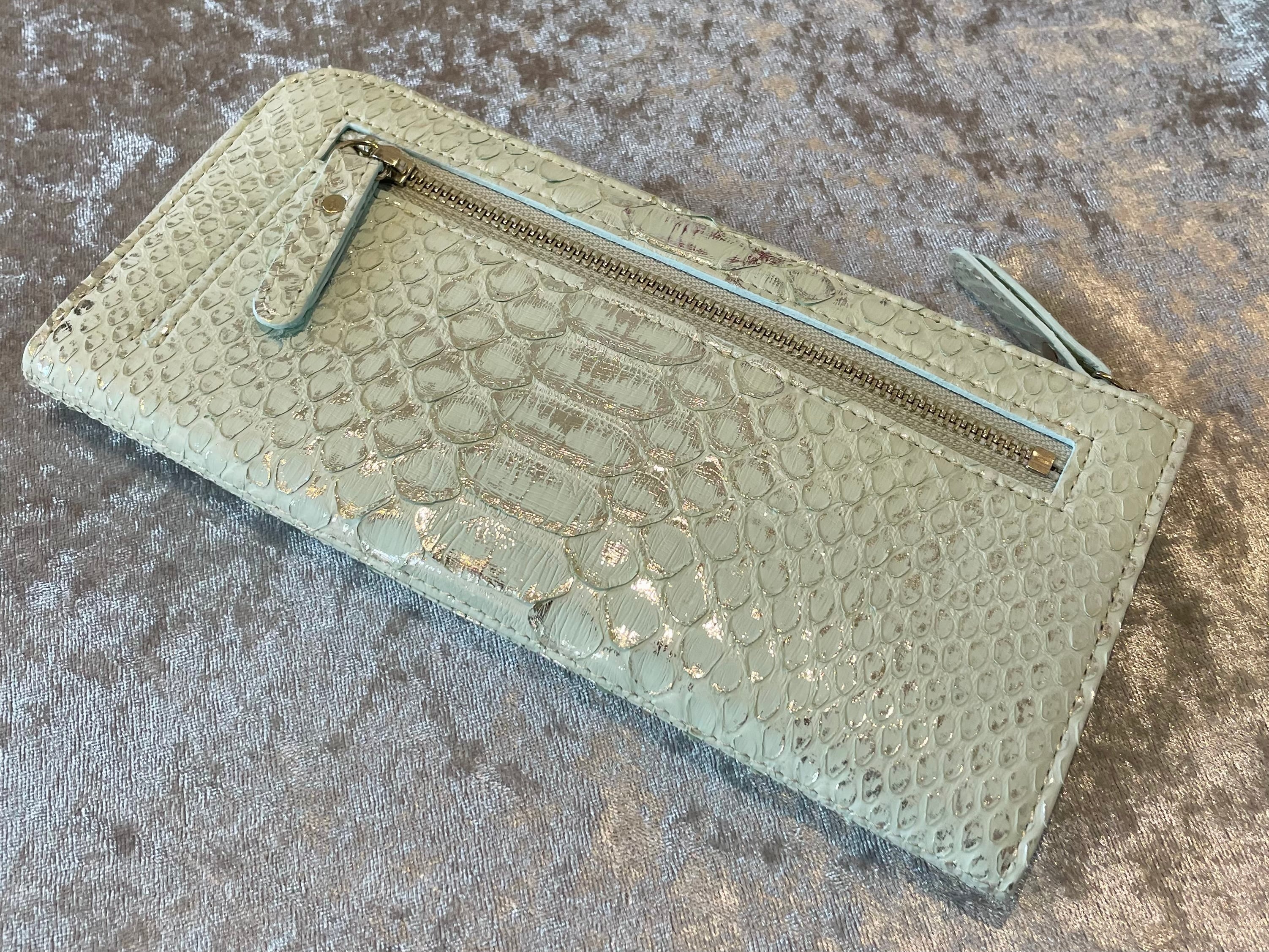 ダイヤモンドパイソン L字ファスナーウォレット シルバーミント
