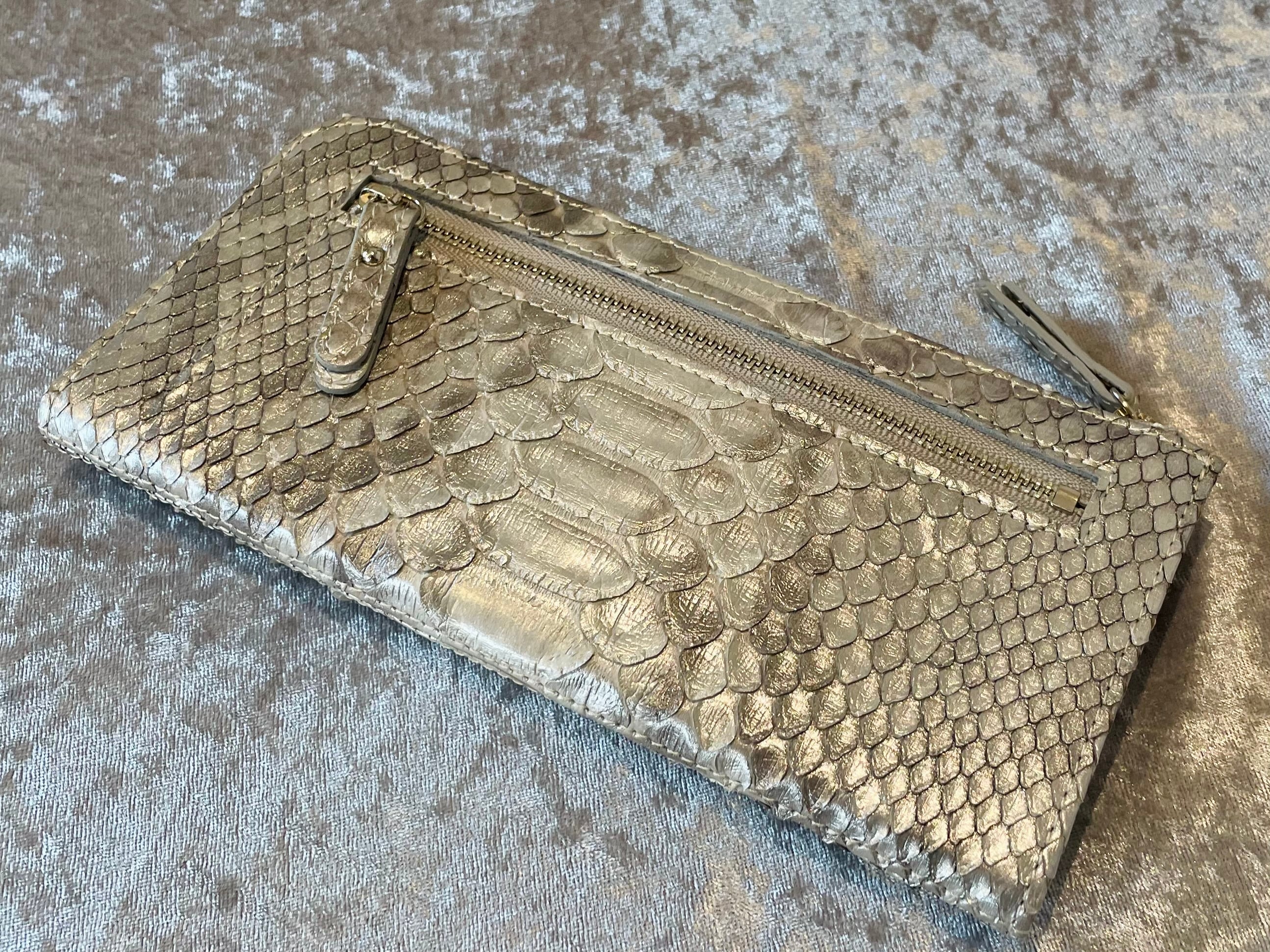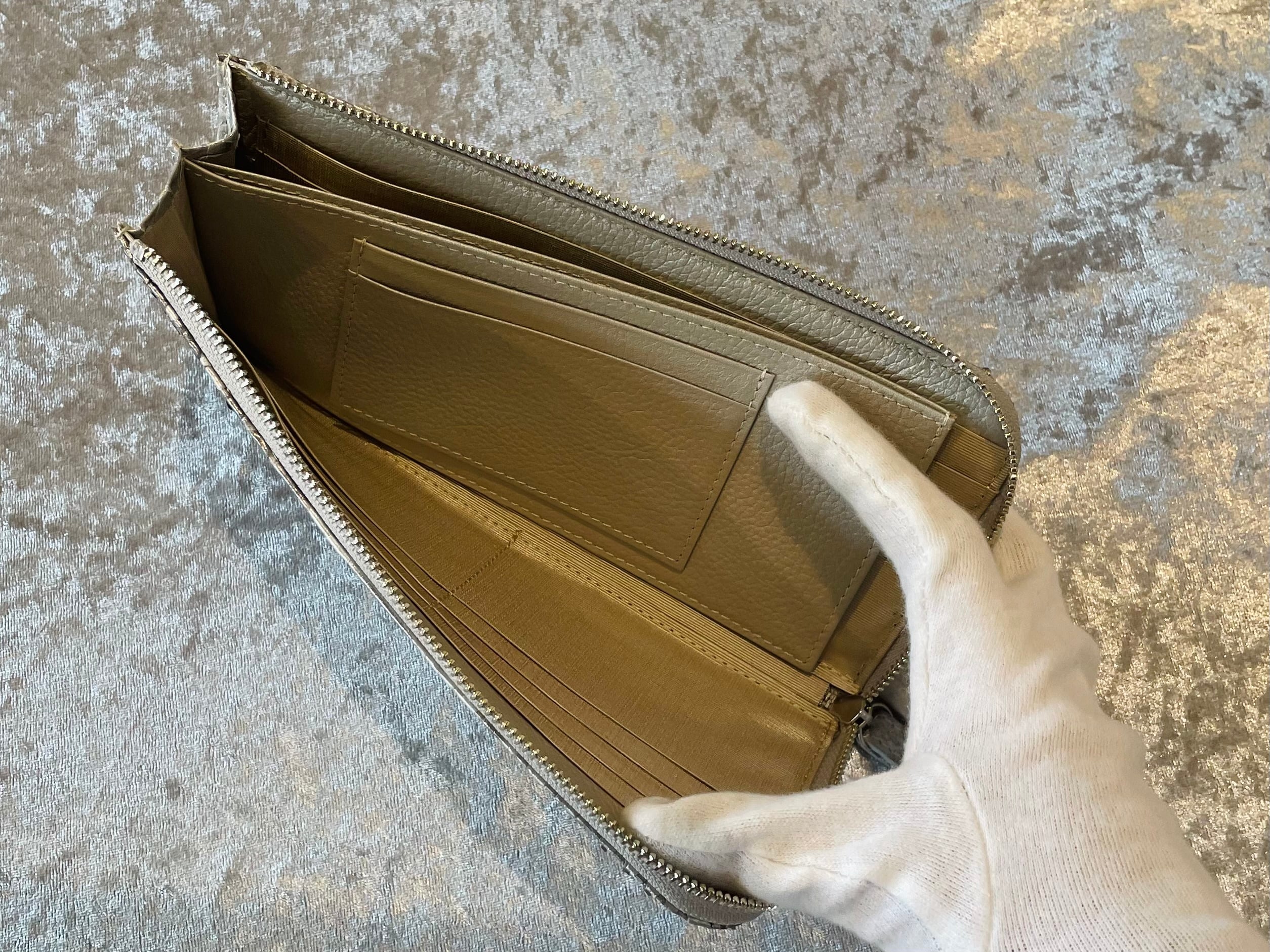 厳選されたダイヤモンドパイソンの革を使い、国内で仕立てたL字ファスナータイプのウォレットです。