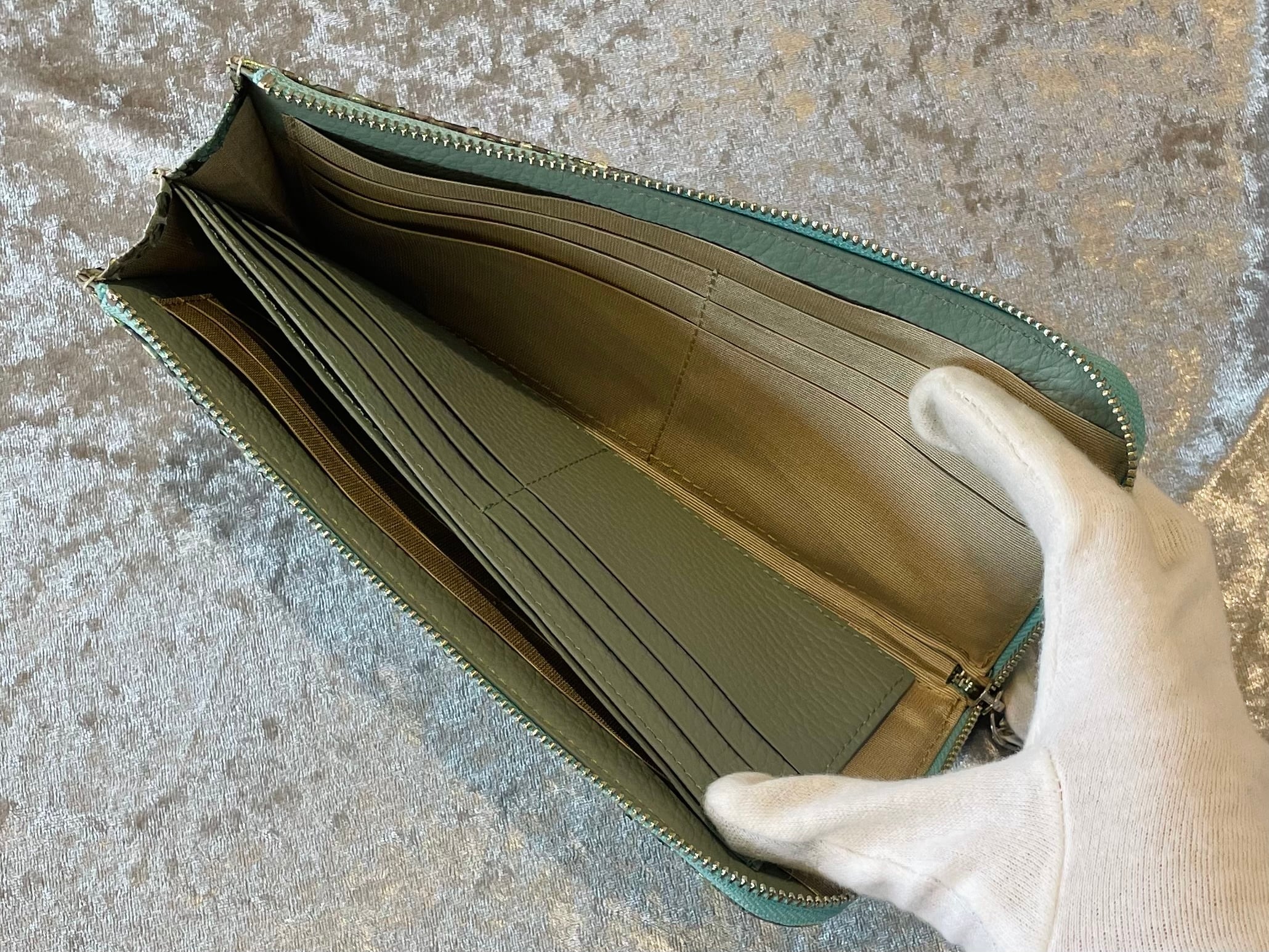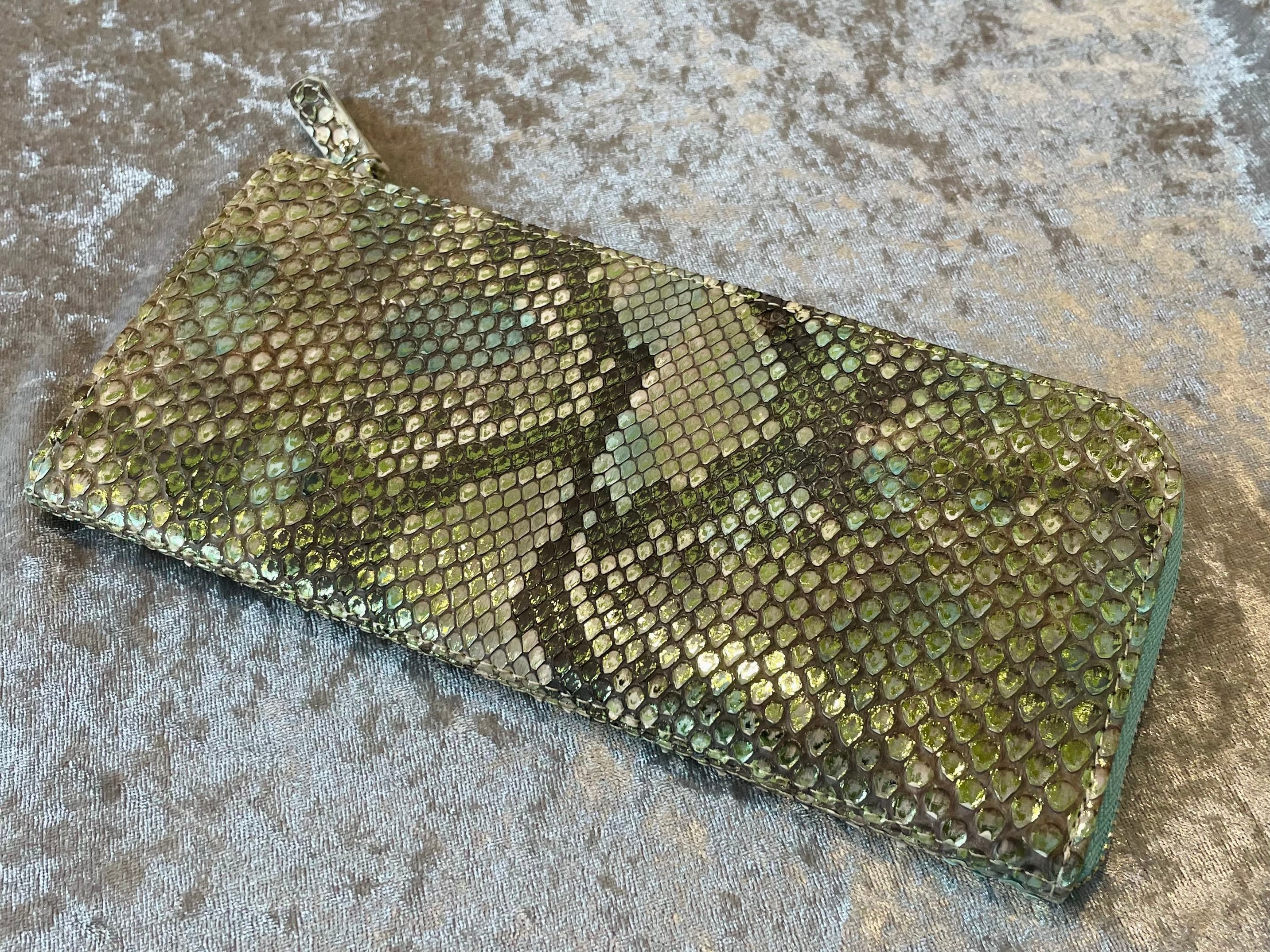 ダイヤモンドパイソン L字ファスナーウォレット グリーンナチュラル