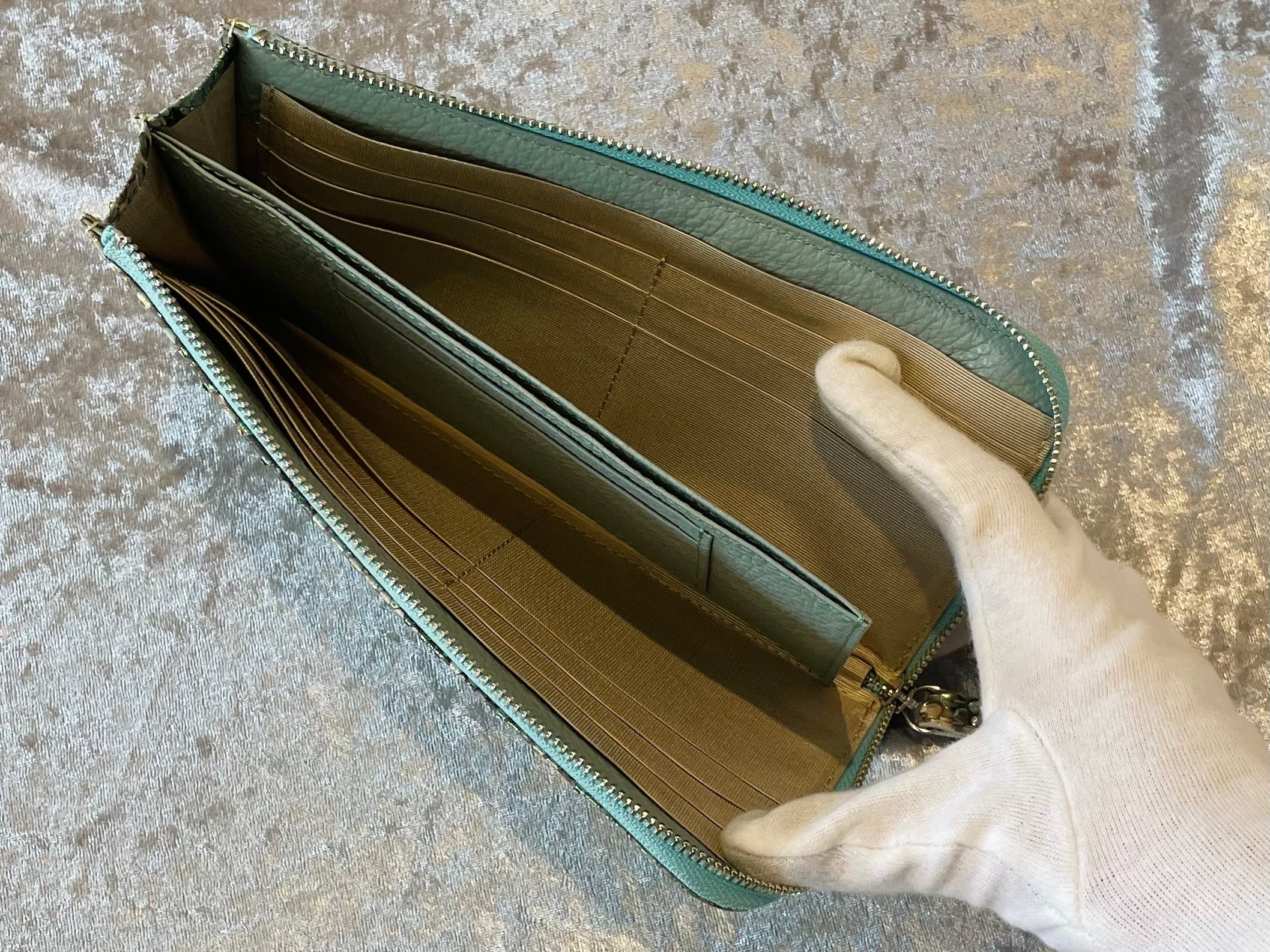 厳選されたダイヤモンドパイソンの革を使い、国内で仕立てたL字ファスナータイプのウォレットです。