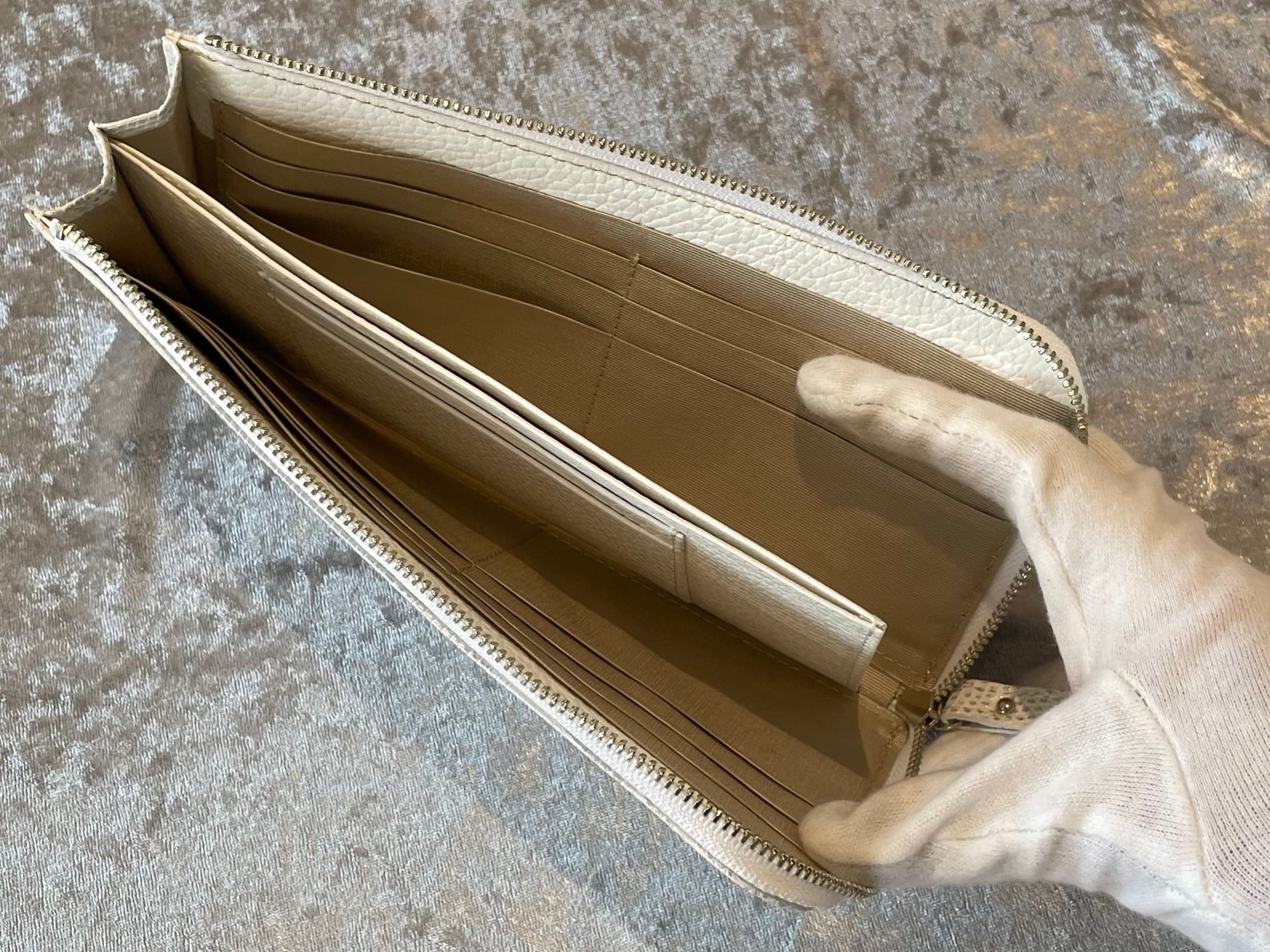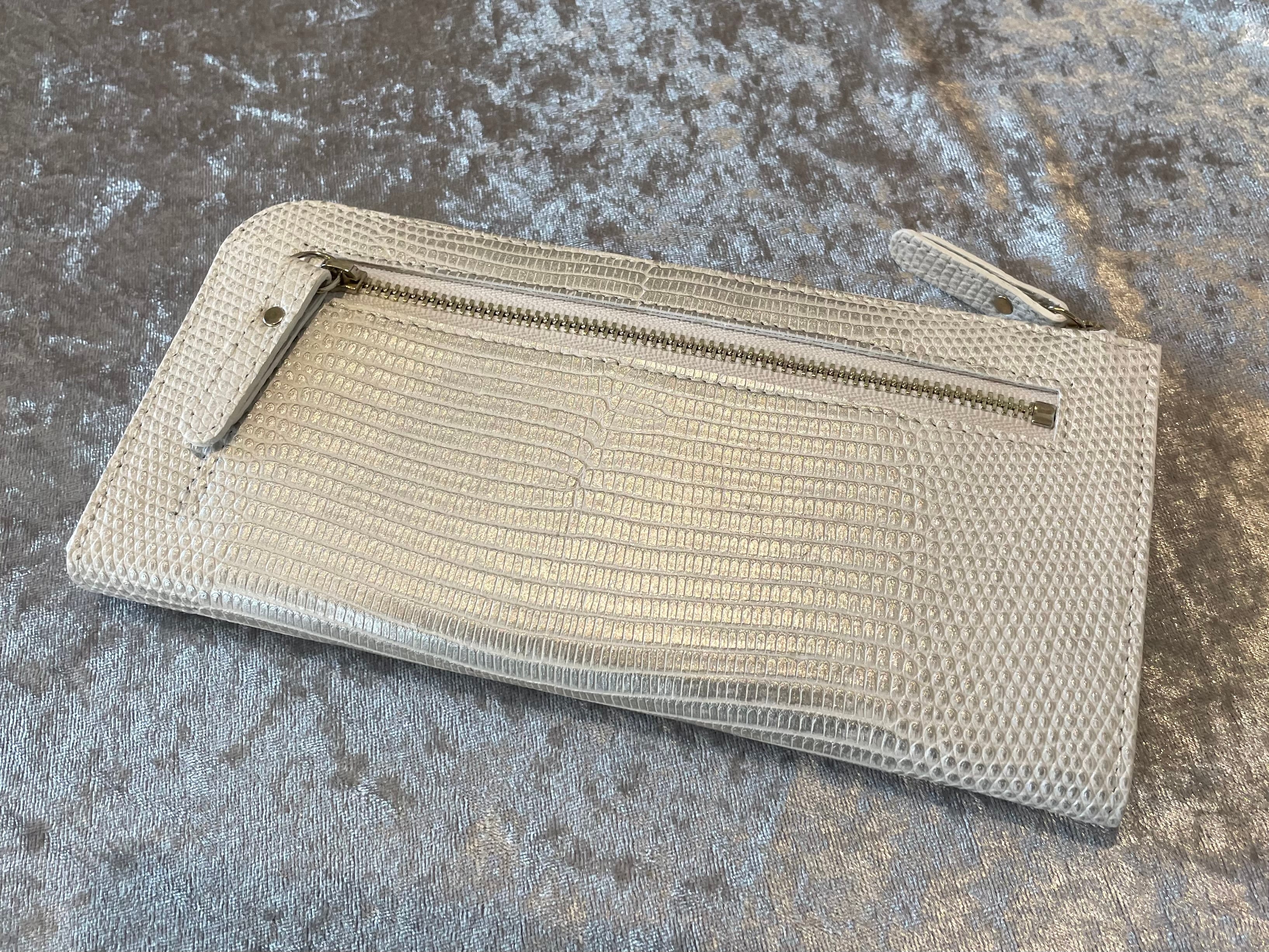 厳選されたリザード(リングマークトカゲ)の革を使い、国内で仕立てたL字ファスナータイプのウォレットです。