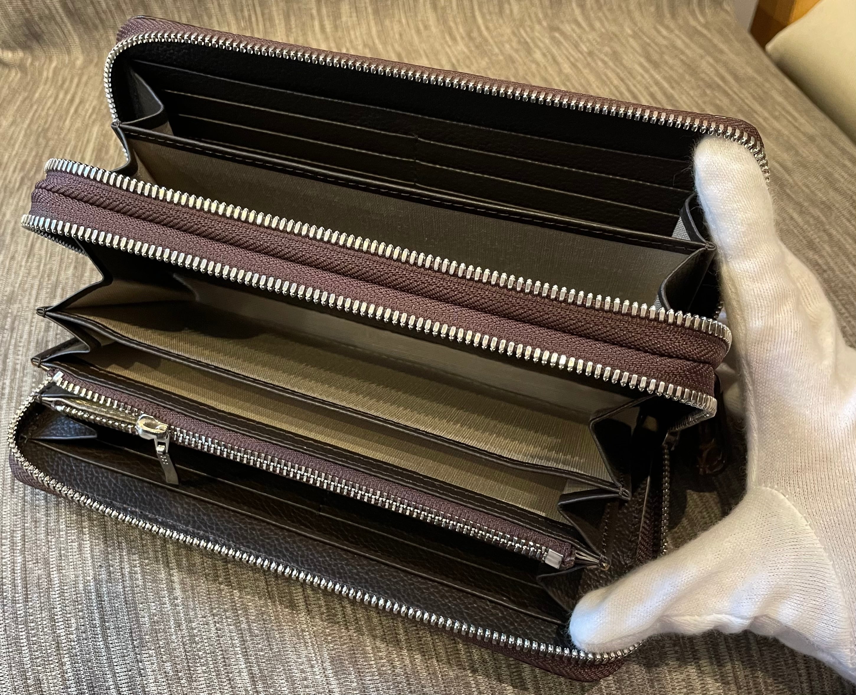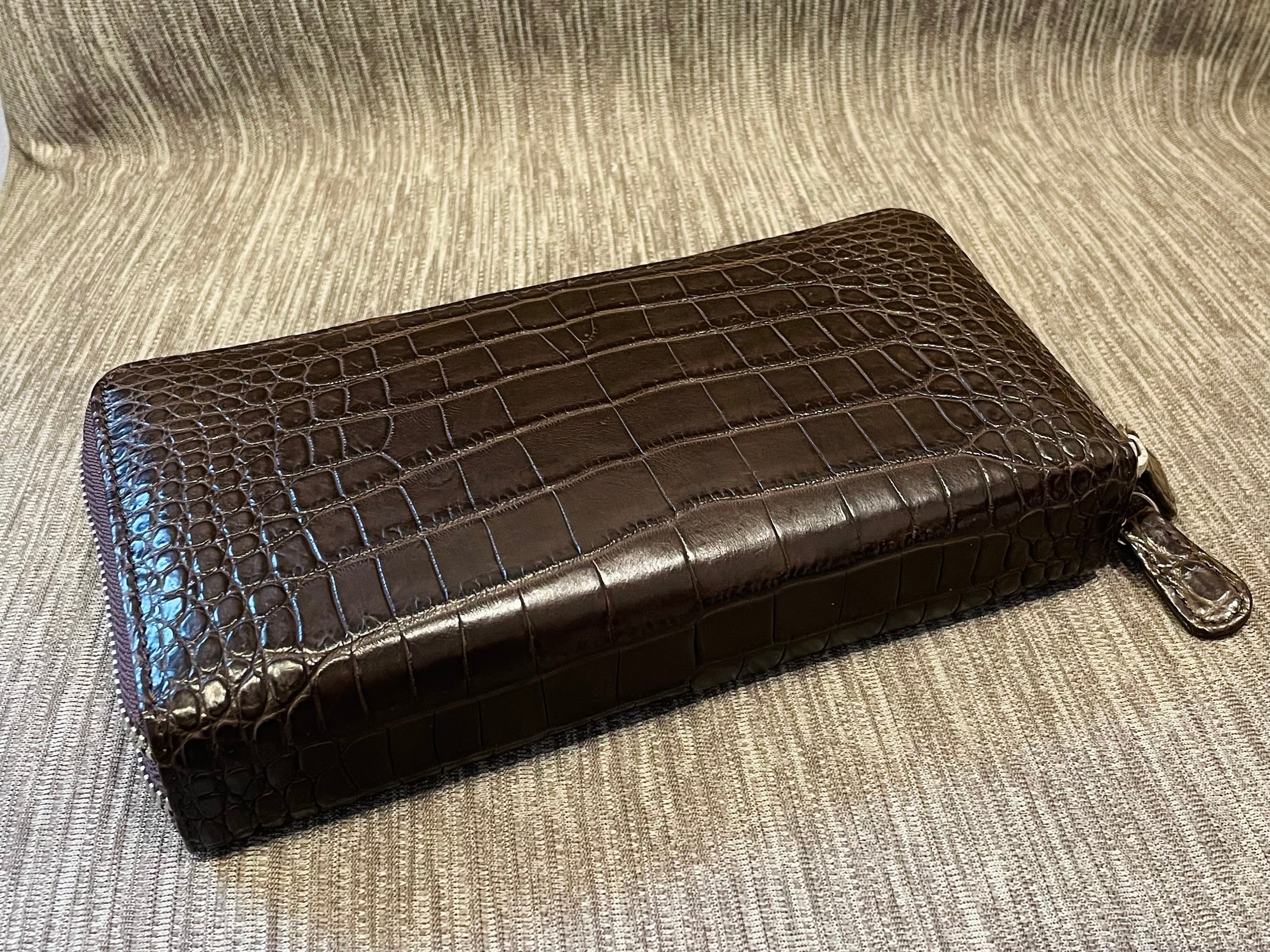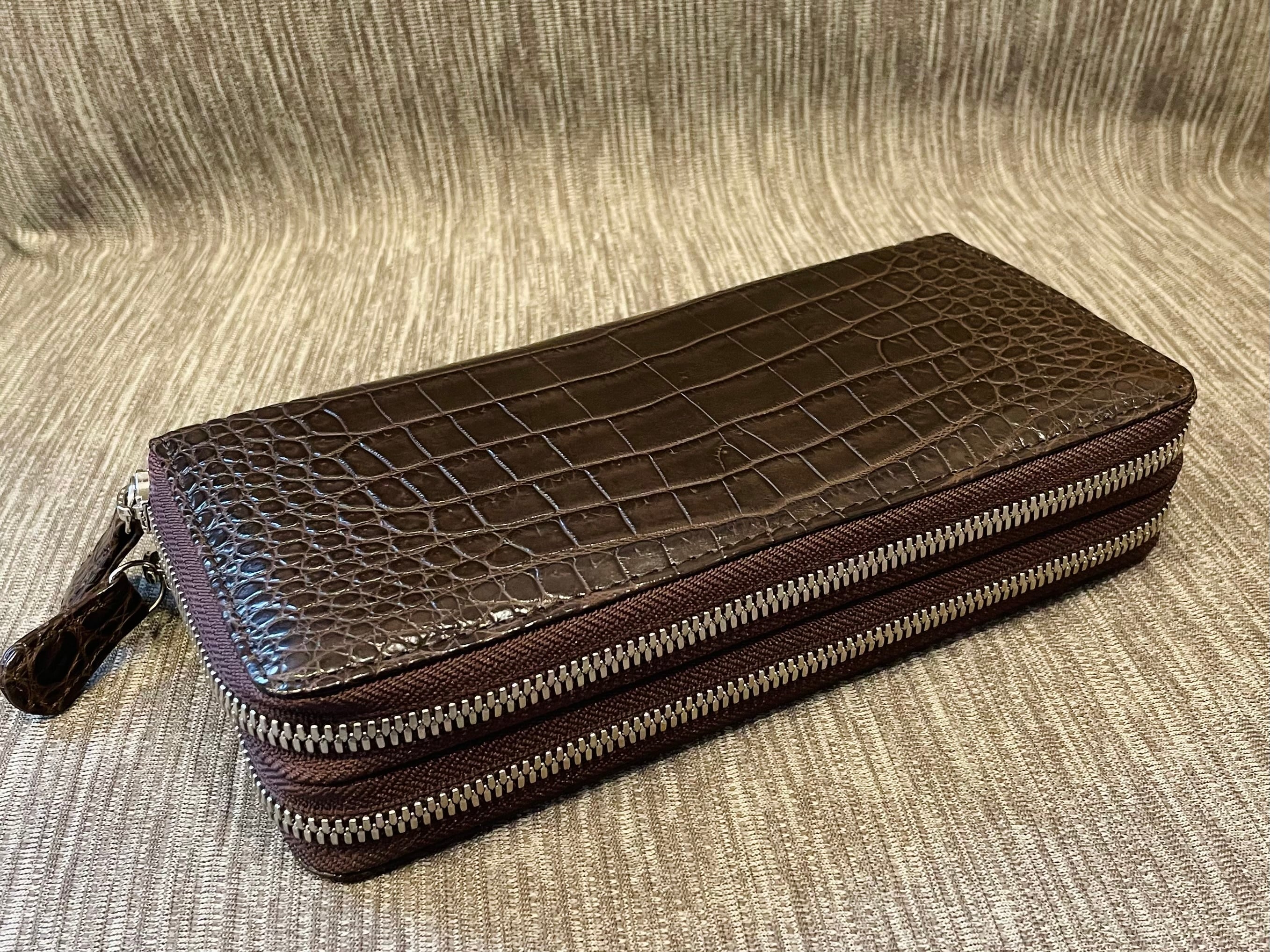 スモールクロコダイル(ポロサス)ダブルファスナーウォレット 大容量 ニコチン