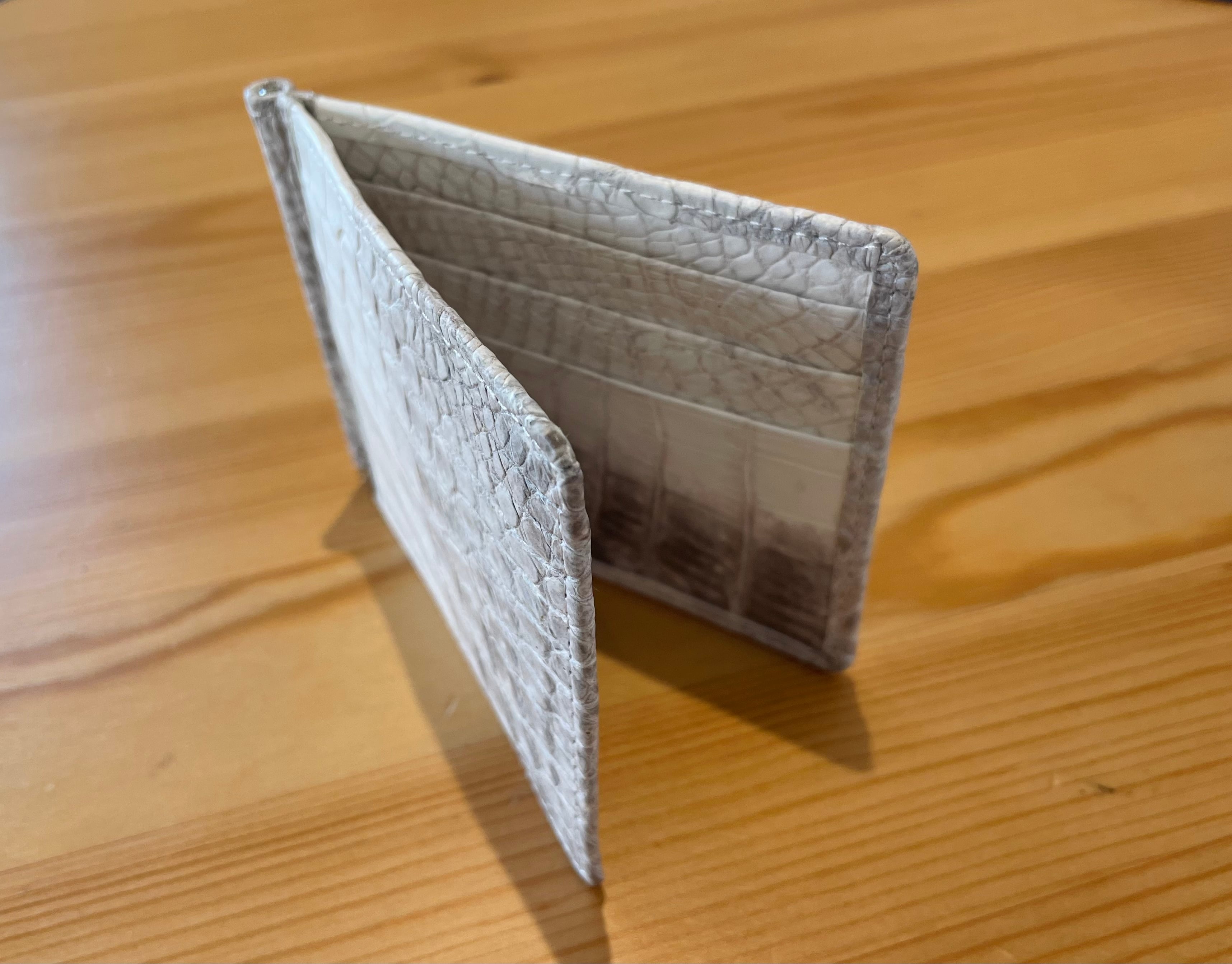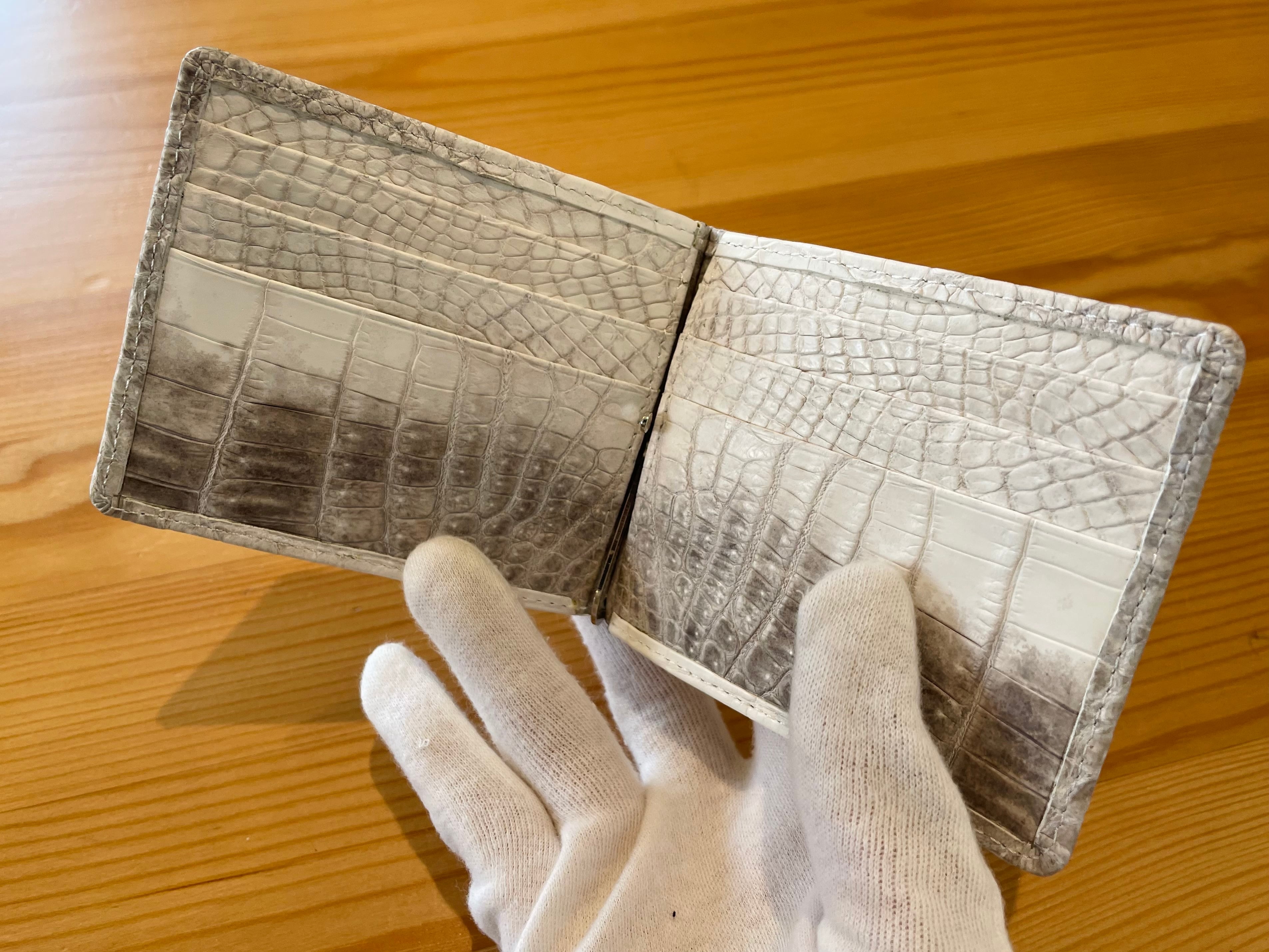 本製品は、外装はもちろん、内側のカード段までヒマラヤクロコダイルを配した、市場でも滅多に出会えない最高級の造りです。
