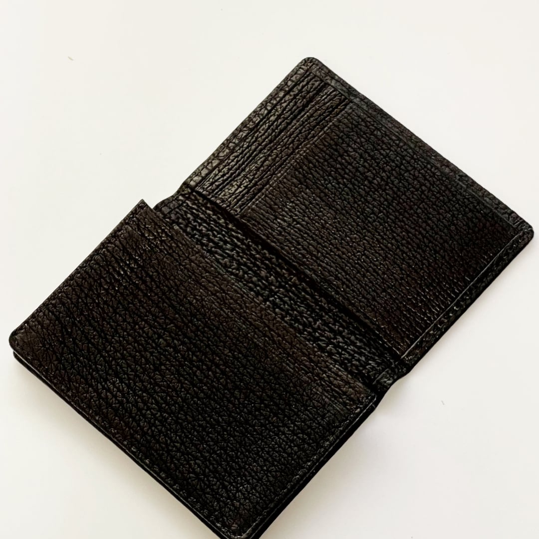 シャーク革の特徴である独特の質感と艶感は、洗練された印象を与え、手に取る度にその魅力が際立ちます。日々の使い方の中で、この名刺入れはただのアイテムではなく、あなたのスタイルを引き立てる大切なパートナーとなるでしょう。